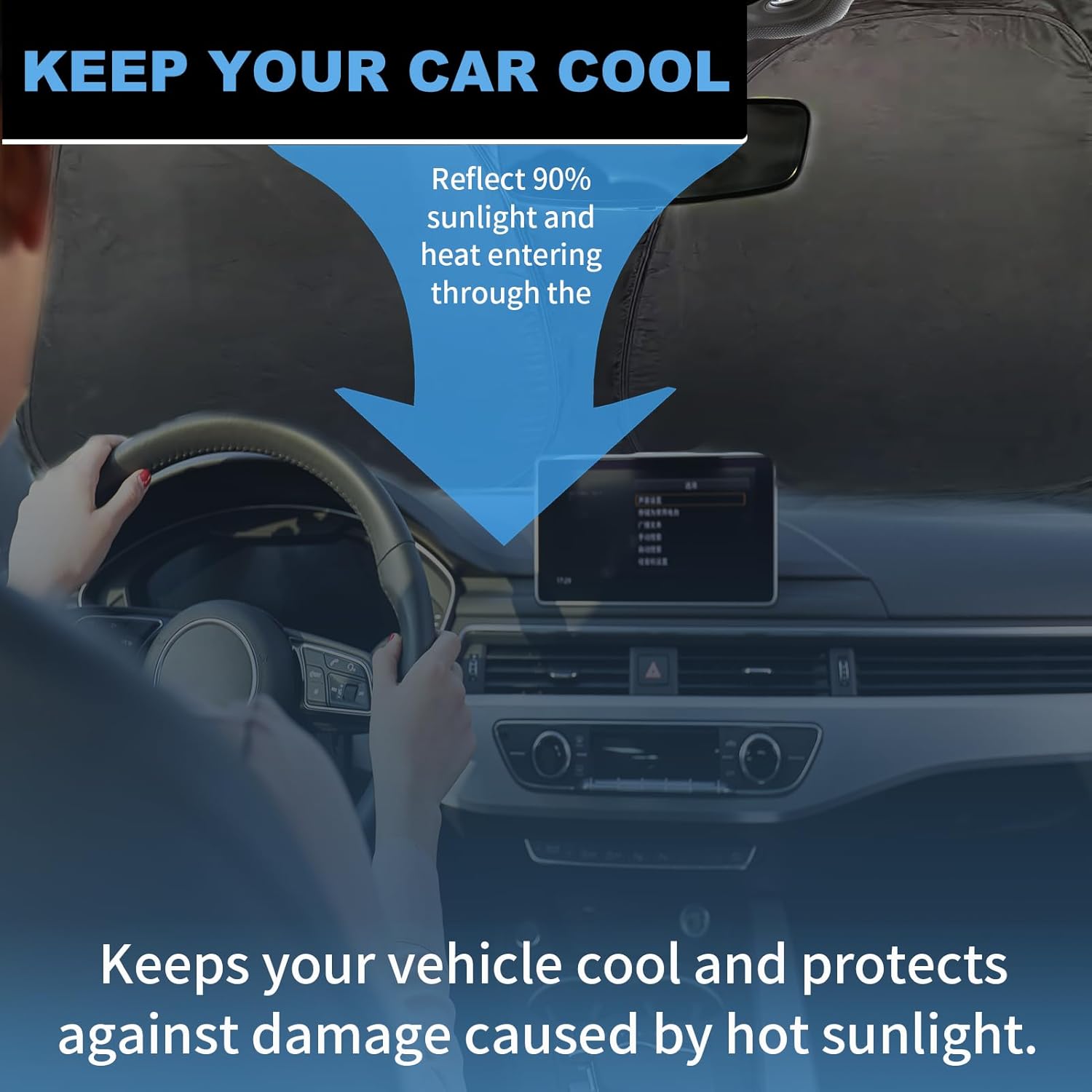 - 【Better Heat Reduction & Sun Blocking 】More full sun protection: The new double D-shaped steel ring design makes the sunshade fit more closely to the front window, reducing light leakage and enhancing the blocking effect.
