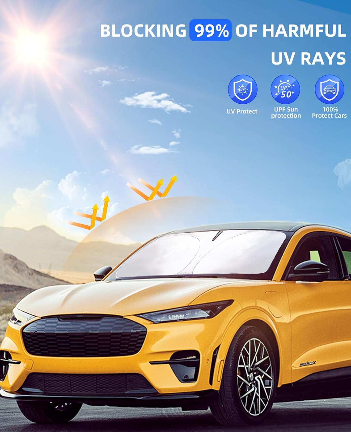 for 2026 Mustang Mach-E Windshield Sunshade Sun Shade-for 2021-2025 Ford Mustang Mach-E Windshield Cover Front Window Sun Visor Protector 240T Blocks UV (NOT for Ford Mustang) Accessories