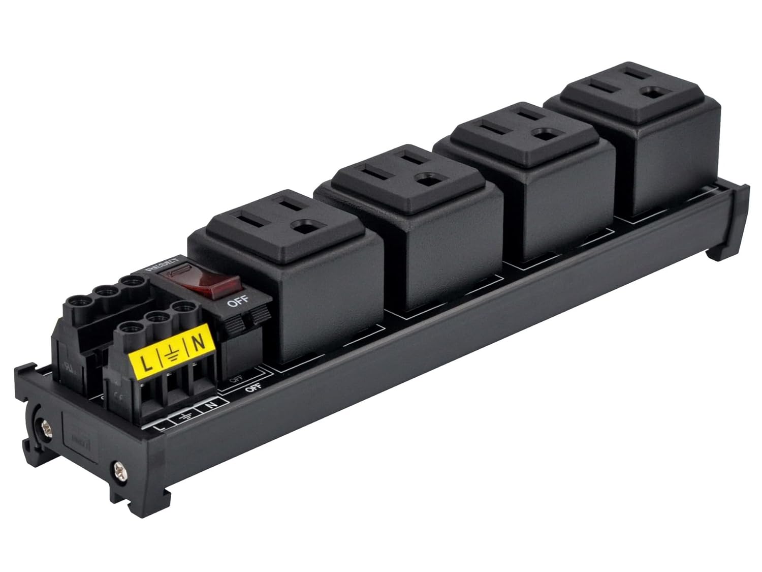 DIN Rail Mount AC 120V NEMA 5-15R 4 Receptacles Outlet Power Strip Module, with Rocker Switch Thermal Circuit Breaker Overload Protector