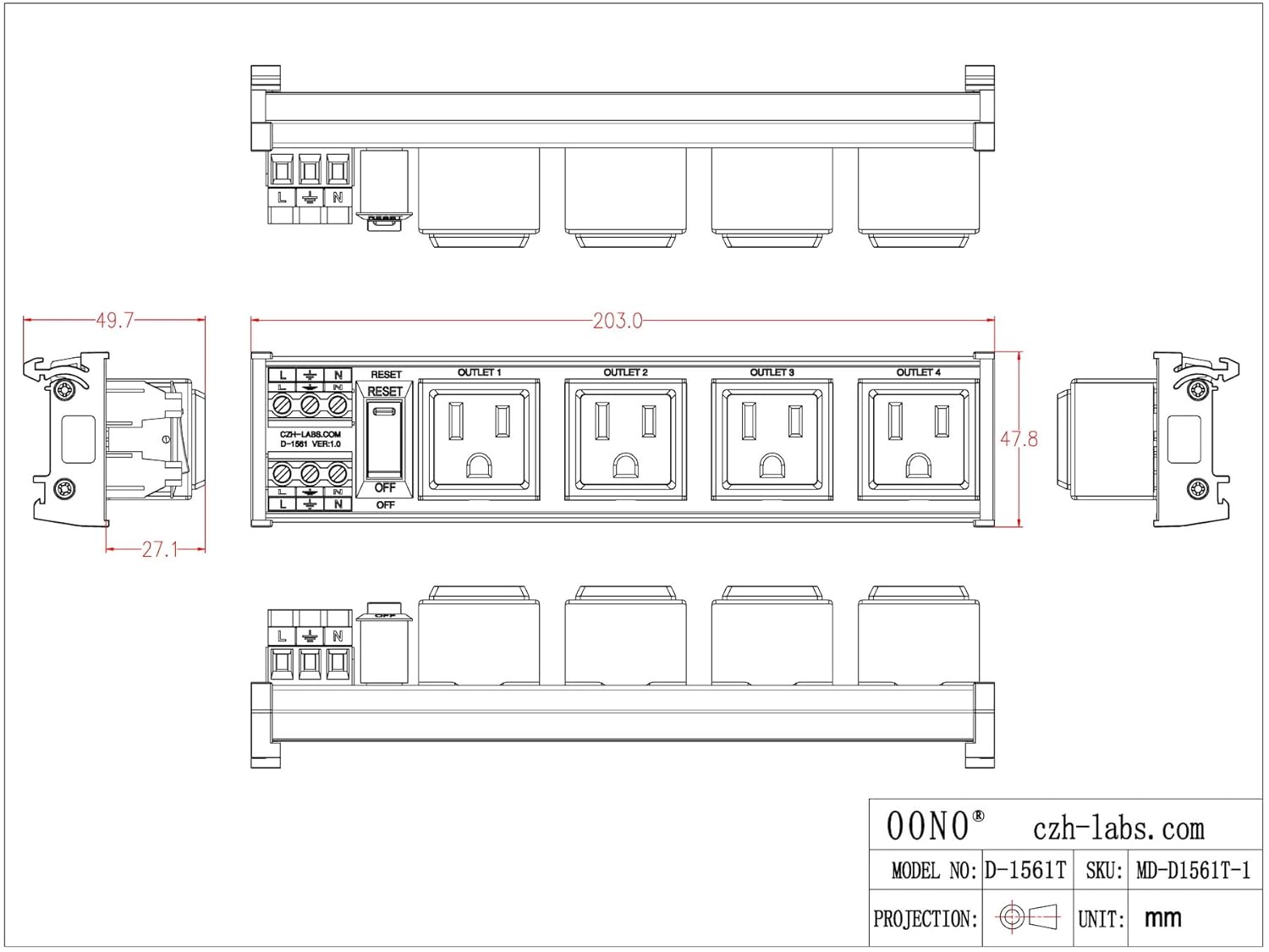 - UL CE certified DIN rail nylon material mount carrier. UL 94-V0 certified FR-4 fiberglass material PCB. UL CE CQC certified terminal blocks. UL certified NEMA 5-15R receptacle. UL certified circuit breaker.