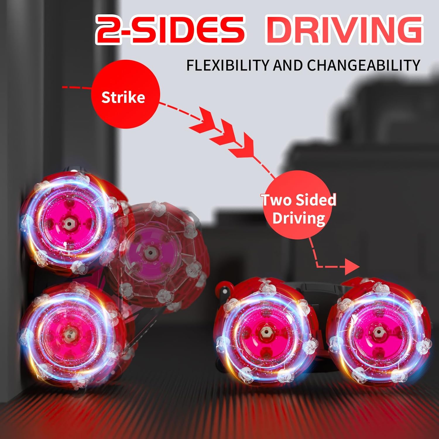 - Versatile Drift RC Stunt Vehicle: Equipped with unique tires. RC vehicles can drift in all directions, maneuver laterally, roll and rotate 360°. This multifunctional stunt car can conquer any terrain - sand, grass, soil, rocks, etc