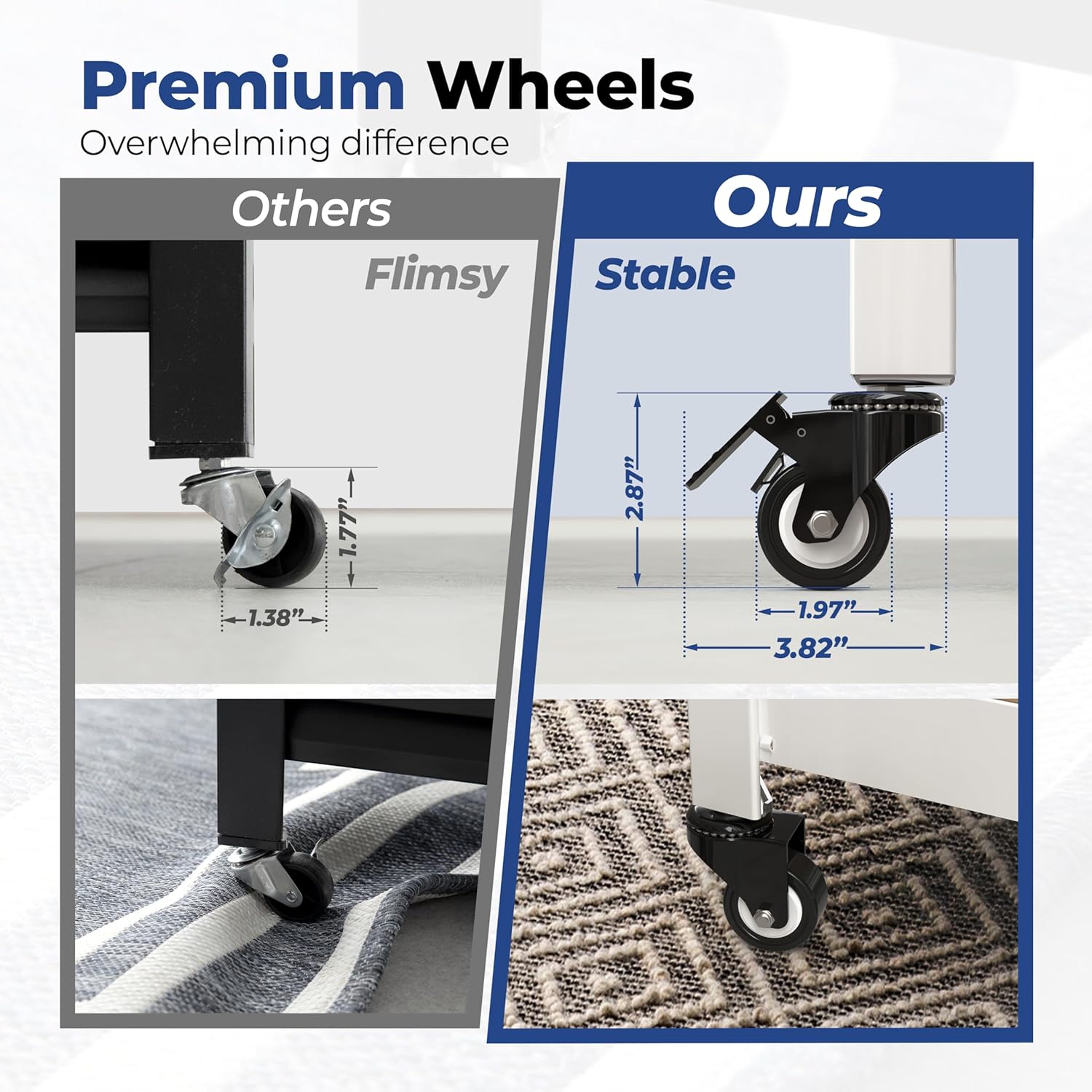 HOMEDANT House White 5-Tier Metal Rolling Cart Shelf Rack Casters Heavy Duty Wheel Shelving Unit Adjustable Utility Storage Shelves Organizer Shelf Kitchen Garage 24.4" W x 16.5" D x 62.2" H 4Pack