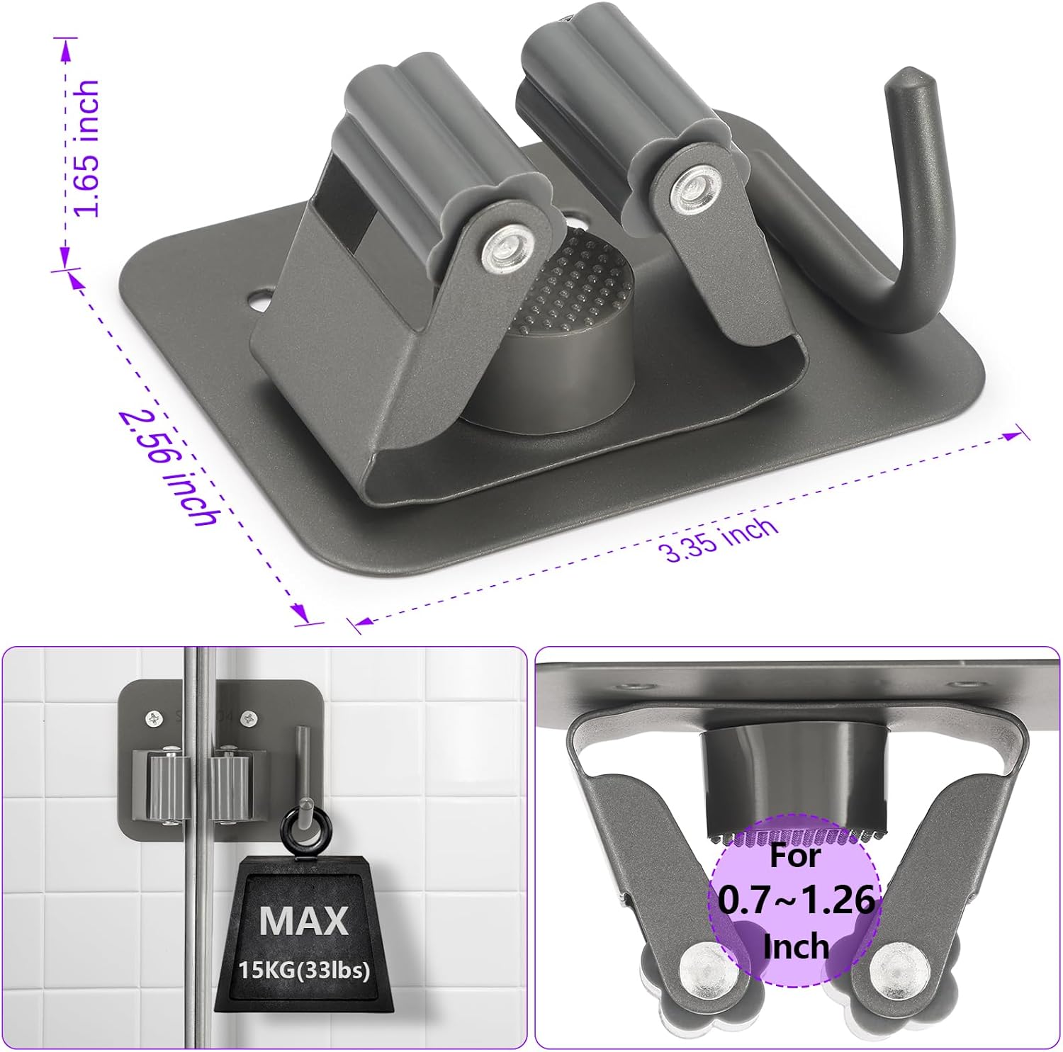 - Rod Holder - Home Improvement Items, Wall Mount Metal Mop and Broom Organizer and Laundry Garden Kitchen Tool Rack, Wall Hanger for Home Goods, 4 Gripper Positions with 4 Hooks,Gery