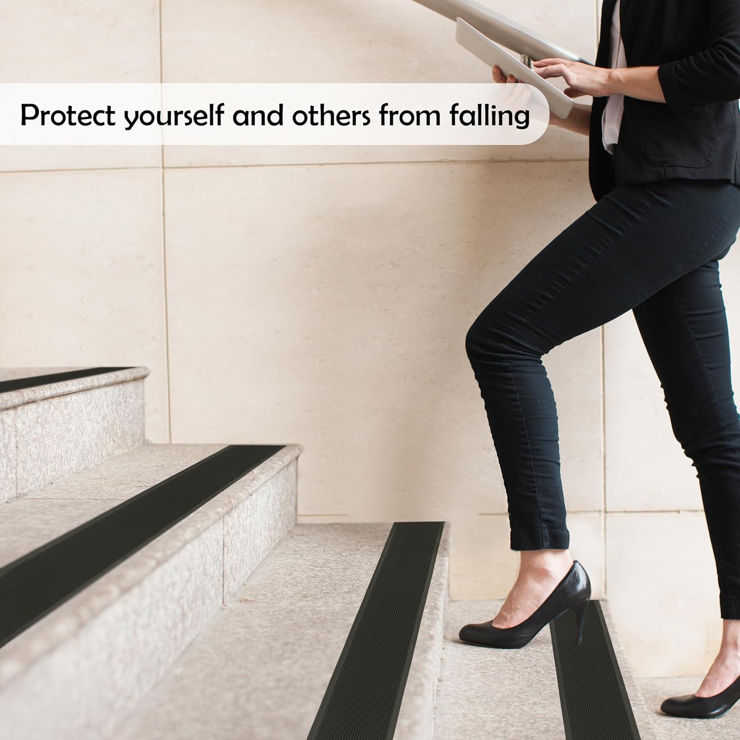 - STRONG SELF-ADHESIVE WORKS ON ANY SMOOTH SURFACE – Its strong self-adhesive allows it to adhere to any flat surface without difficulty. You can stick this stair treads non slip tape on wood, tile, metal, plastic, laminate, vinyl, or glass.