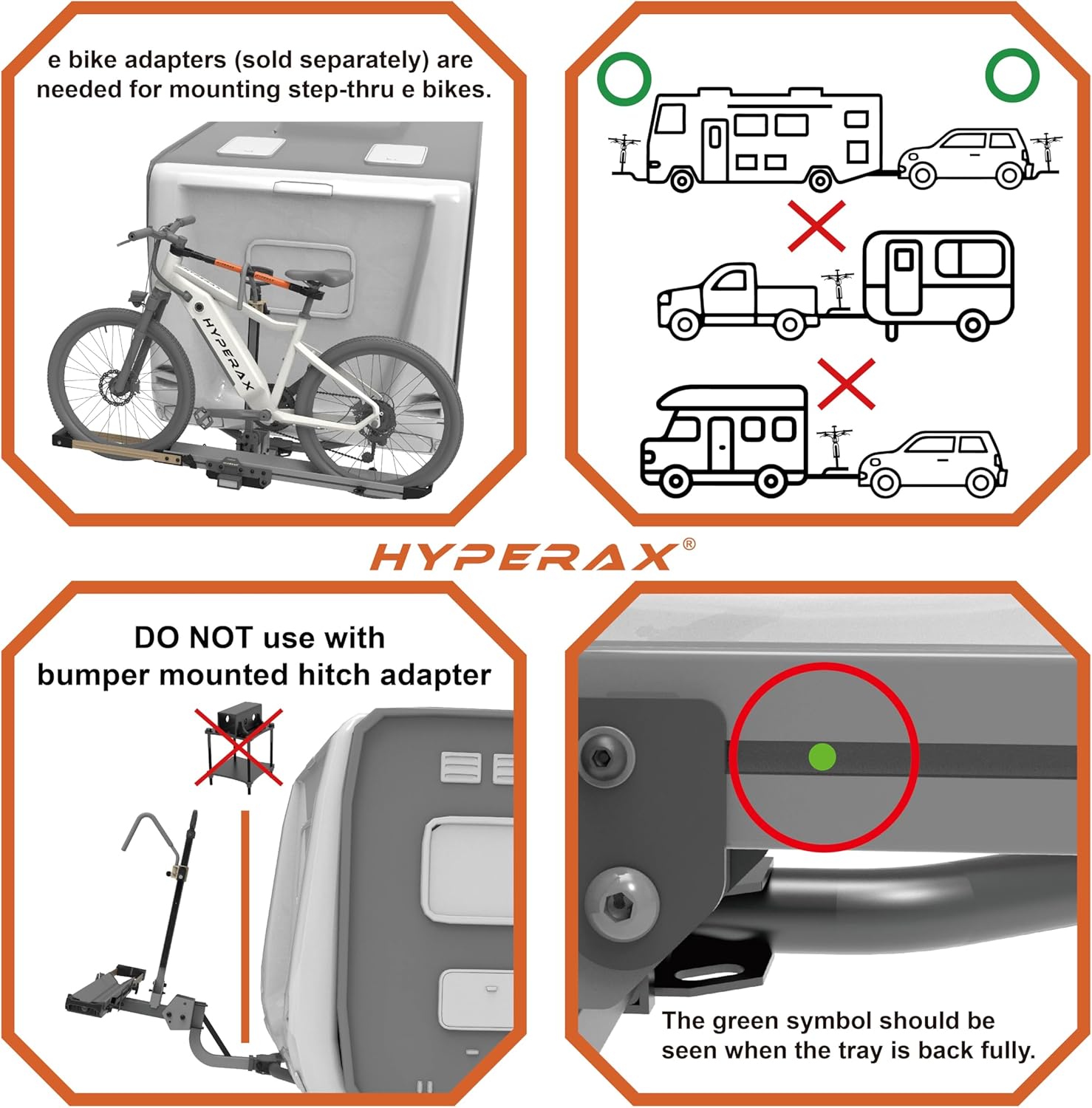 HYPERAX Patented Lift Assisted Volt Lift 1x RV Rated Hitch Mounted 2 E Bike Rack Carrier Up to 1X 80lbs eBikes with Up to 5" Fat Tires for RV and SUV