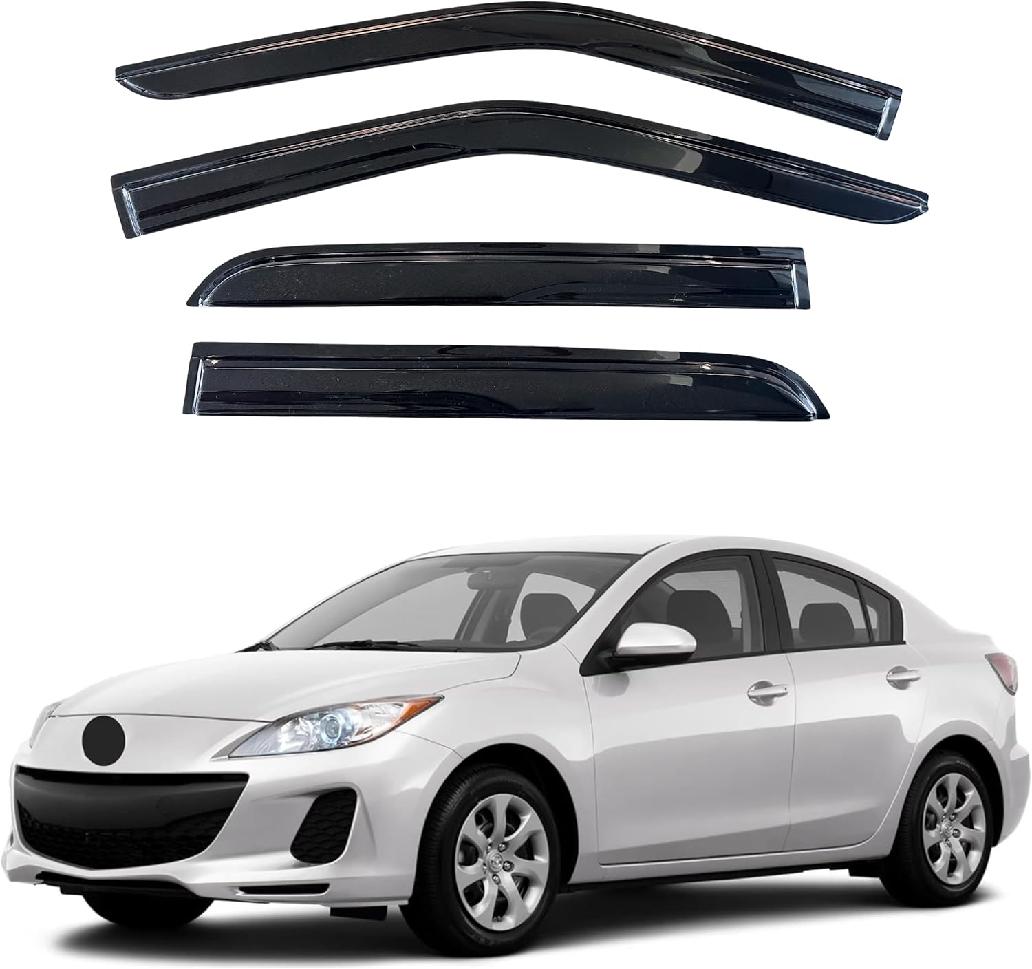 - 【Perfect Fit】KPY window visors rain guards vent deflectors compatible with Mazda 3 Sedan 2010 2011 2012 2013 (Mugen Style)
