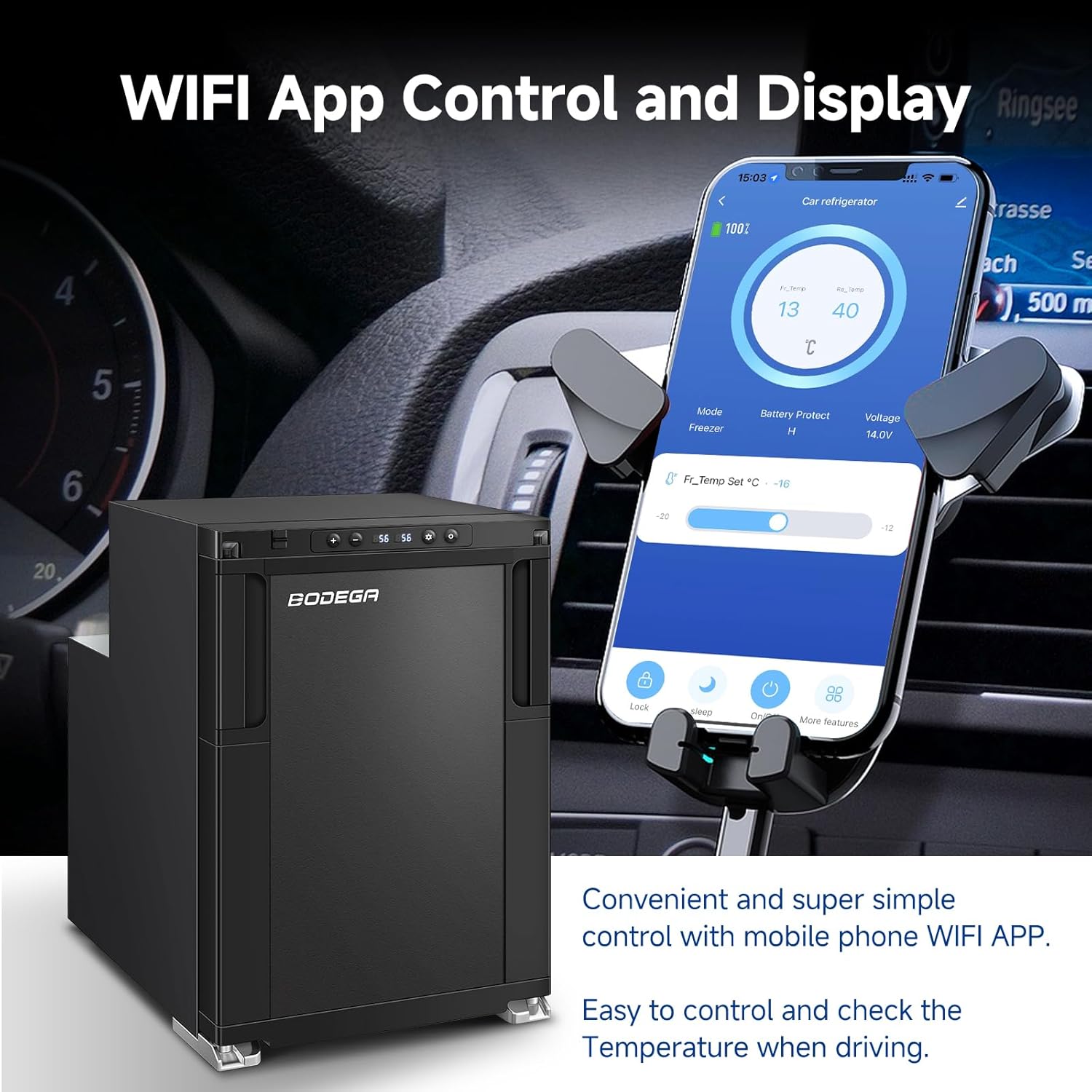 BODEGA [Upgraded 12 Volt Refrigerator, RV Refrigerator APP Control, 45L(1.6cu.ft) RV Fridge and Freezer, Electric Cooler with Lock, (-4℉-46℉) Fridge freezer 12/24V DC for Truck, RV, Camping, Travel