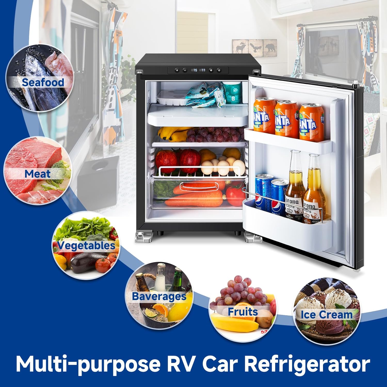 - Professional & Powerful Compressor : BODEGA RV Mini Refrigerator can be a fridge (41.7 L) and freezer (3.3 L) simultaneously! It can chill down to 4°F using powerful compressor cooling technology, from refrigeration to freezing. Adjust the freezing or refrigeration range of the car refrigerator from -4 ℉ to 46 ℉ as needed. This portable refrigerator and freezer is a good choices for outdoor activities such as camping, picnics, road trips, and more. RV refrigerator to accompany you on your journey
