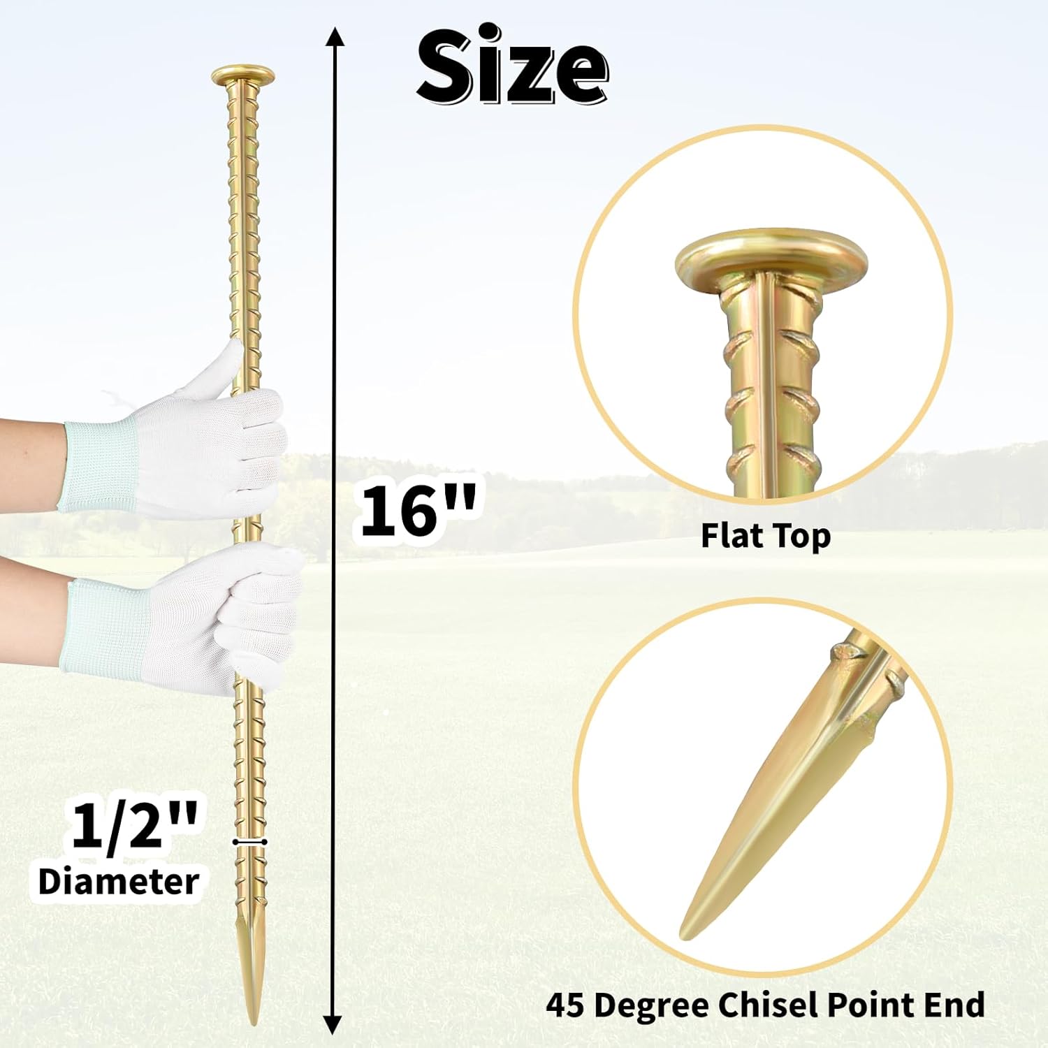 - 【Ribbed & Yellow Galvanized】These rebar stakes are made of malleable steel material. Yellow galvanized to help avoid rust. Ribbed ground anchors are solid, secure firmly and no bend.