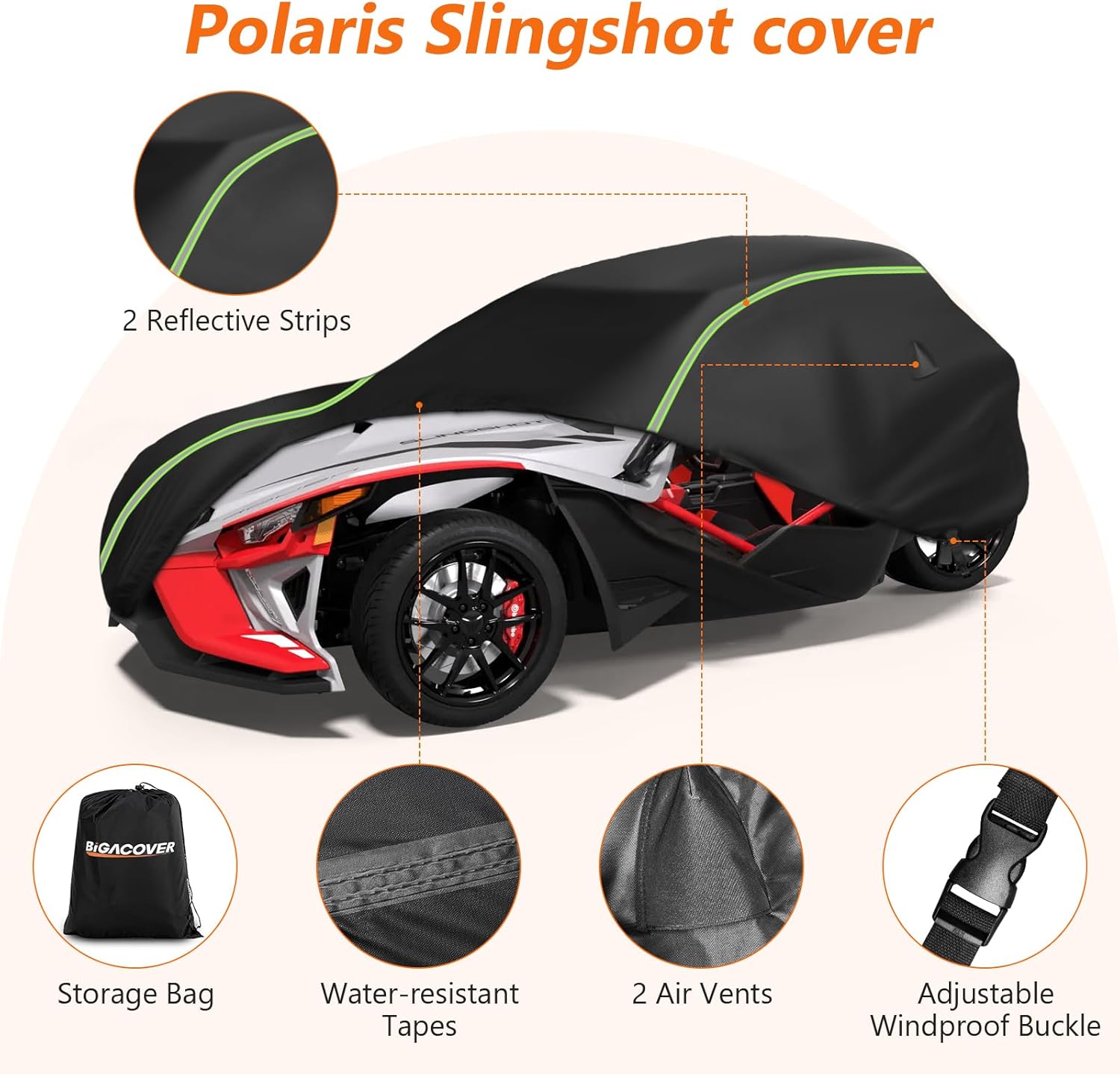 - All Weather Protection: The cover keeps your Slingshot Polaris clean from rain, snow, dust, and leaves, prolonging the life of your Slingshot Polaris and minimizing the need for cleaning.