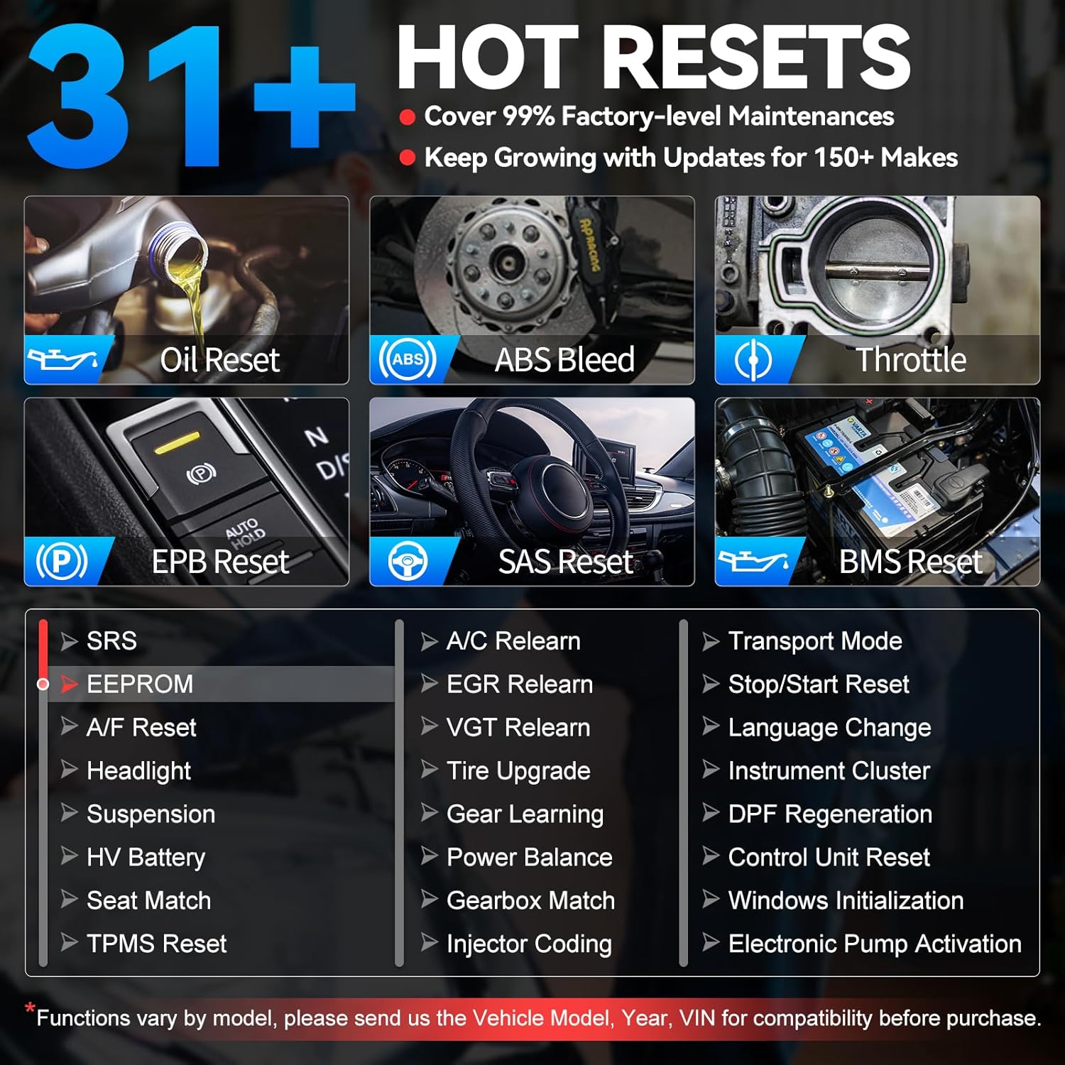 - Stay Ahead with 31+ Reset for Faster & Easier Repairs: VDIAGTOOL VD70 Lite scanner for car meets almost all daily maintenance needs for both home mechanics and workshops as a professional automotive scan tool. It can perform Oil Reset, ABS Bleed, Crank Sensor Relearn, Idle Relearn, Injector Coding, Window Initialization, HVAC Calibration, Suspension Calibration, Throttle Matching, etc, ensuring efficient repairs and complete maintenance. Besides, long-term free updates keep its functionality and broad vehicle compatibility up to date.