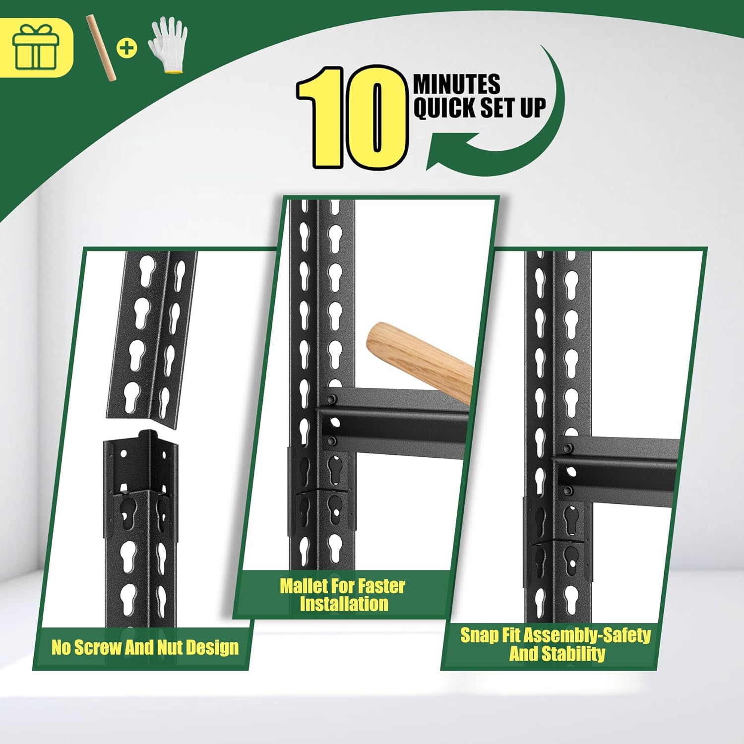 - ăSafeďźRust-ProofăThe entire all-metal shelves are locked by pins to ensure crossbeams stay seated and 4 support straps to prevent twisting or spreading. The powder-coated finish on the steel uprights, support straps, and crossbeams, easy to clean, moisture-proof and rust-proof.