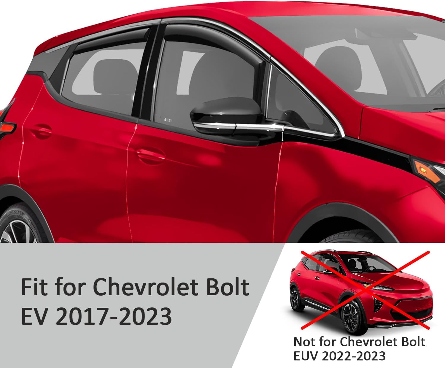 Voron Glass in-Channel Extra Durable Rain Guards for Chevrolet (Chevy) Bolt EV 2017-2023, Window Deflectors, Vent Window Visors, 4 Pieces - 200647