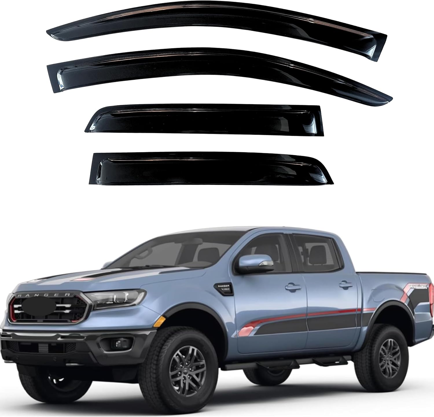 KPY Window Visor Compatible with Ford Ranger SuperCrew 2019-2024, 4PC Rain Guard Side Window Vent Deflectors Tape-On Style, 2019 2020 2021 2022 2023 2024