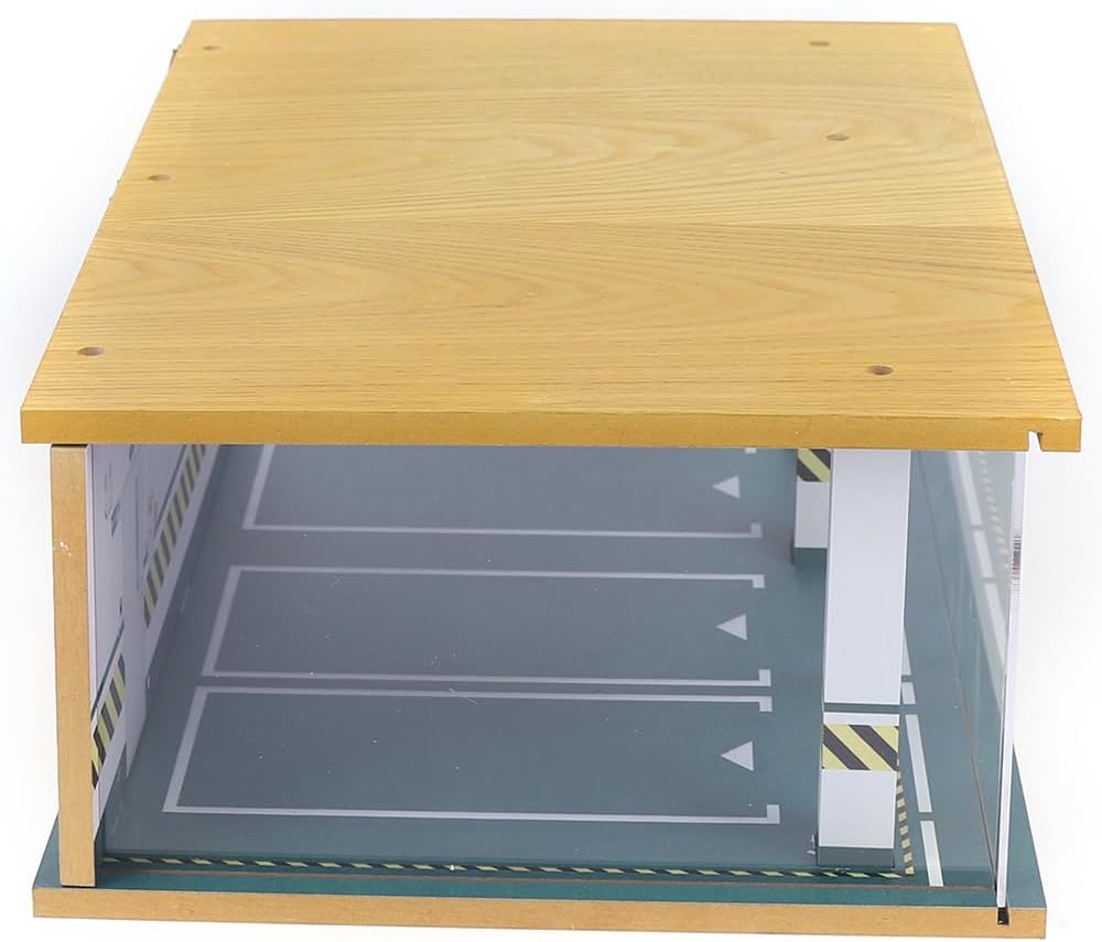 - Excellent Quality: The parking garage model is made of high-density wood board, aluminum alloy and acrylic material, which is cut, polished, UV printed and veneered, which is rust-resistant, sturdy and durable. The acrylic cover has high light transmittance, which can display the car model more clearly and prevent dust at the same time.