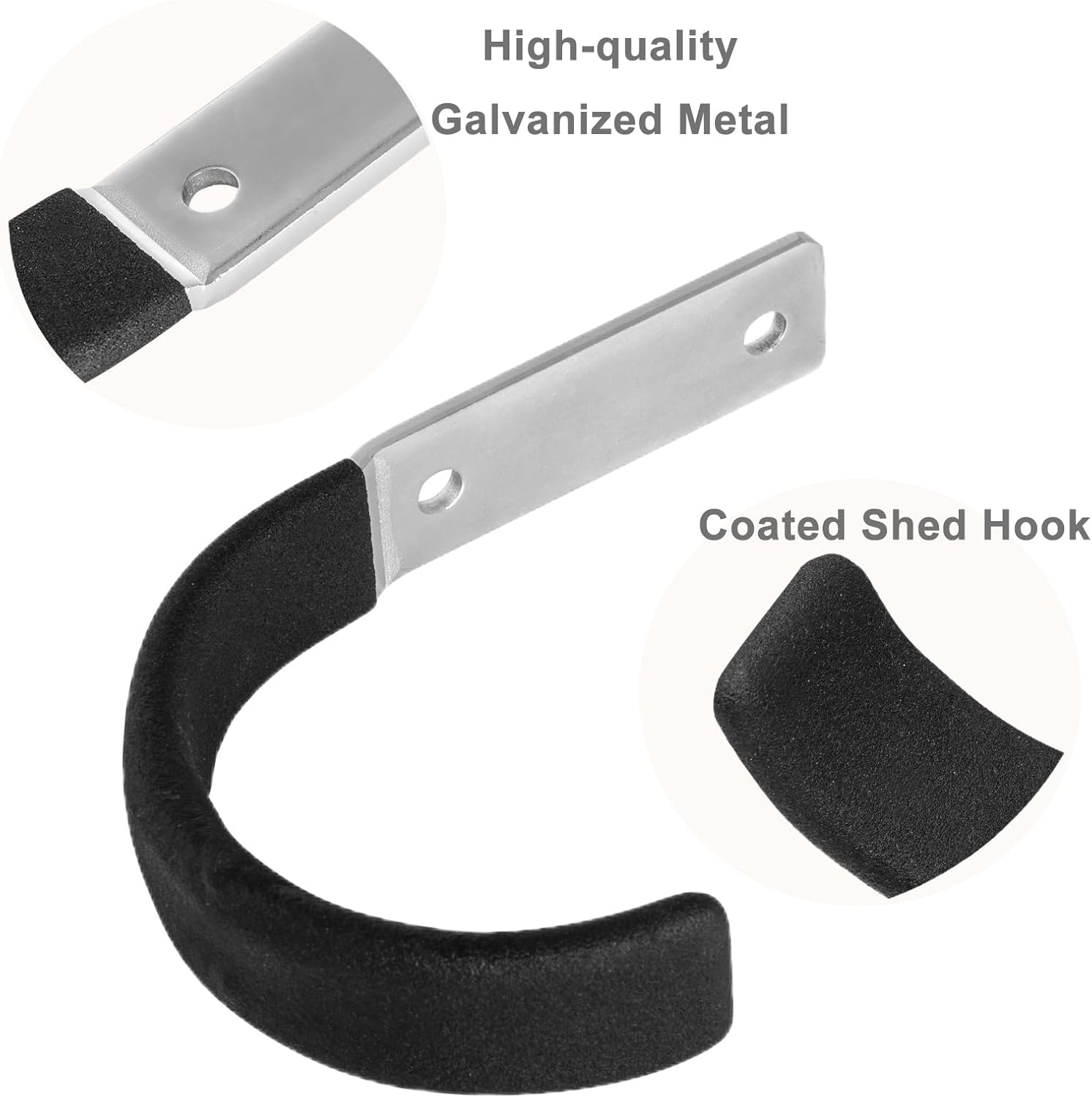 - 【Sturdy Hooks】The ladder hooks are sturdy and durable with a strong load-bearing capacity. Once properly installed, each j hook can easily support over 50 pounds of weight. When multiple tool hooks are used together, they can securely hang a variety of large tools and equipment, whether in a garden, backyard, shed, or garage, keeping your space neat and organized.