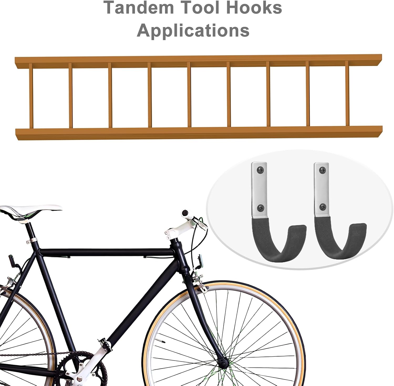 - 【Simple Installation】The ladder storage hooks are equipped with dual pre-drilled holes and come with mounting screws and anchors. The universal hooks are suitable for a wide range of wall surfaces. Whether indoors or outdoors, The garage organization hooks can be easily managed. These small and handy tool hanging hooks are a clever solution for solving large storage problems, allowing limited space to reach its maximum potential.