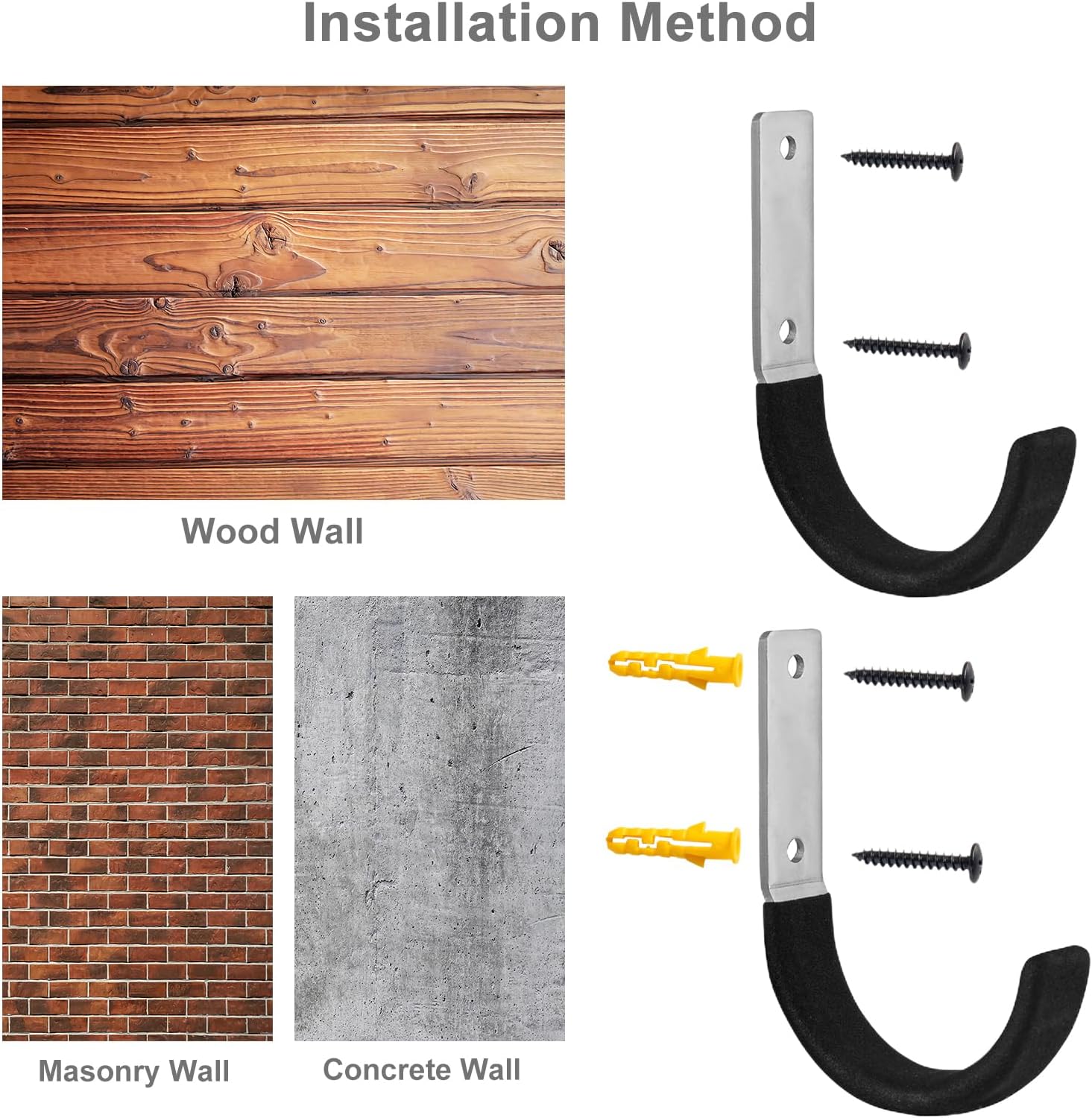 - 【Package Includes】Your exclusive package comes with 2 meticulously crafted garage j hooks, along with 4 black screws and 4 sturdy anchors. Each bike hanger has been carefully selected to deliver an exceptional experience to you. Should you have any questions regarding the bicycle hooks, please feel free to contact us at any time. We are committed to providing you with solutions.