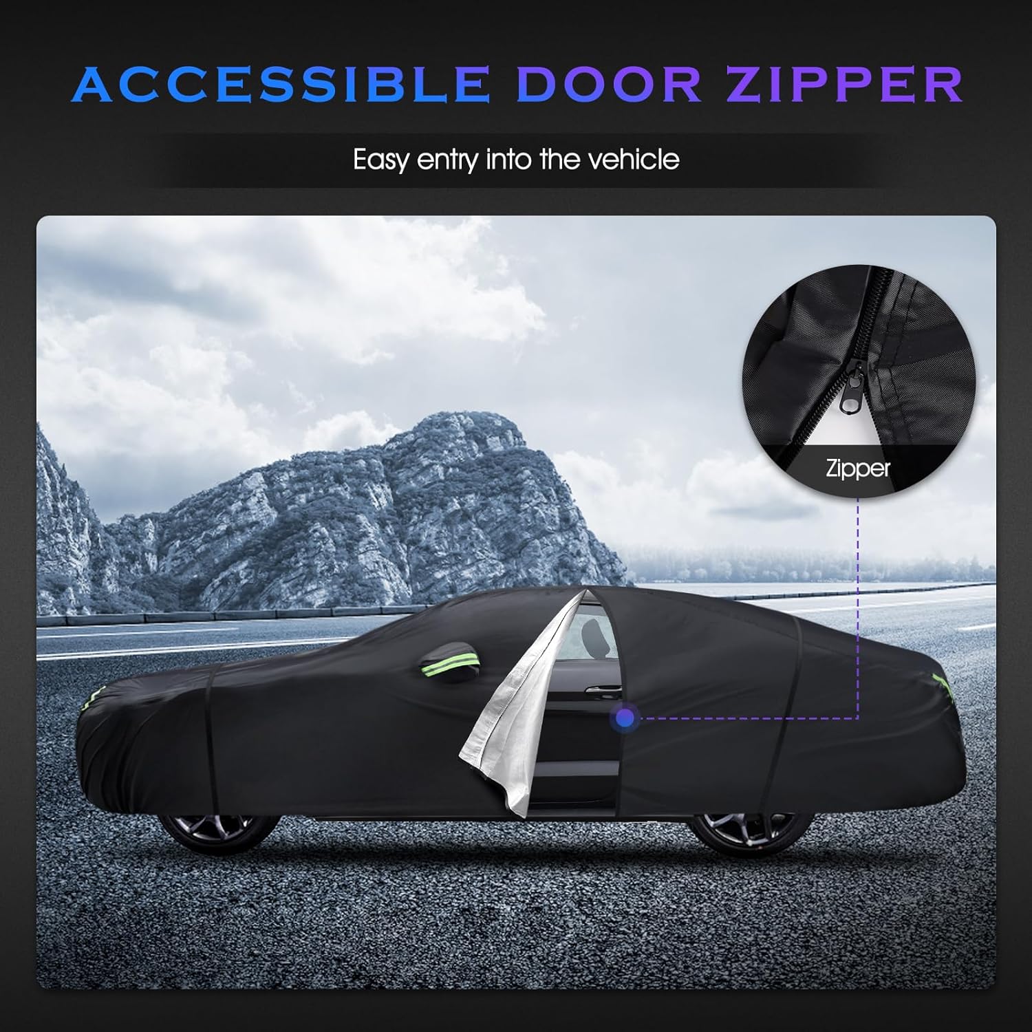 - ăConvenient and save time and spaceă: Our car cover easy to install and remove, making it convenient to use. and with a waterproof bag, making it easy to fold and carry in your trunk without taking up extra spaceďźAccessible door zipper,easy entry into the vehicle
