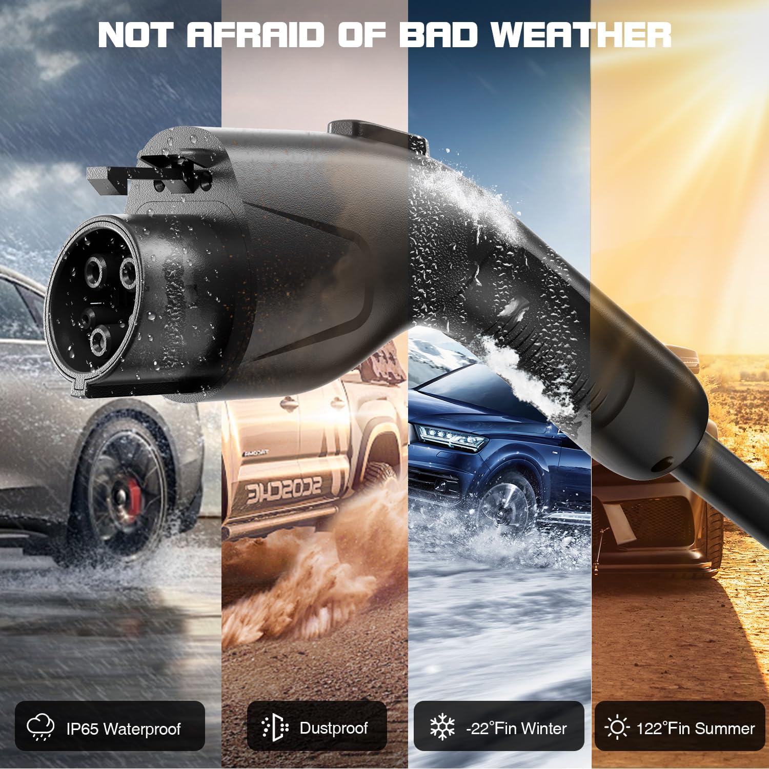 - 【Excellent Safety Protection】The portable electric car charger has FCC and ETL international certification; IP65 is dustproof and waterproof. Provides comprehensive protection against lightning, leakage, grounding, overvoltage, Undervoltage, overcharge, overcurrent, and overheating