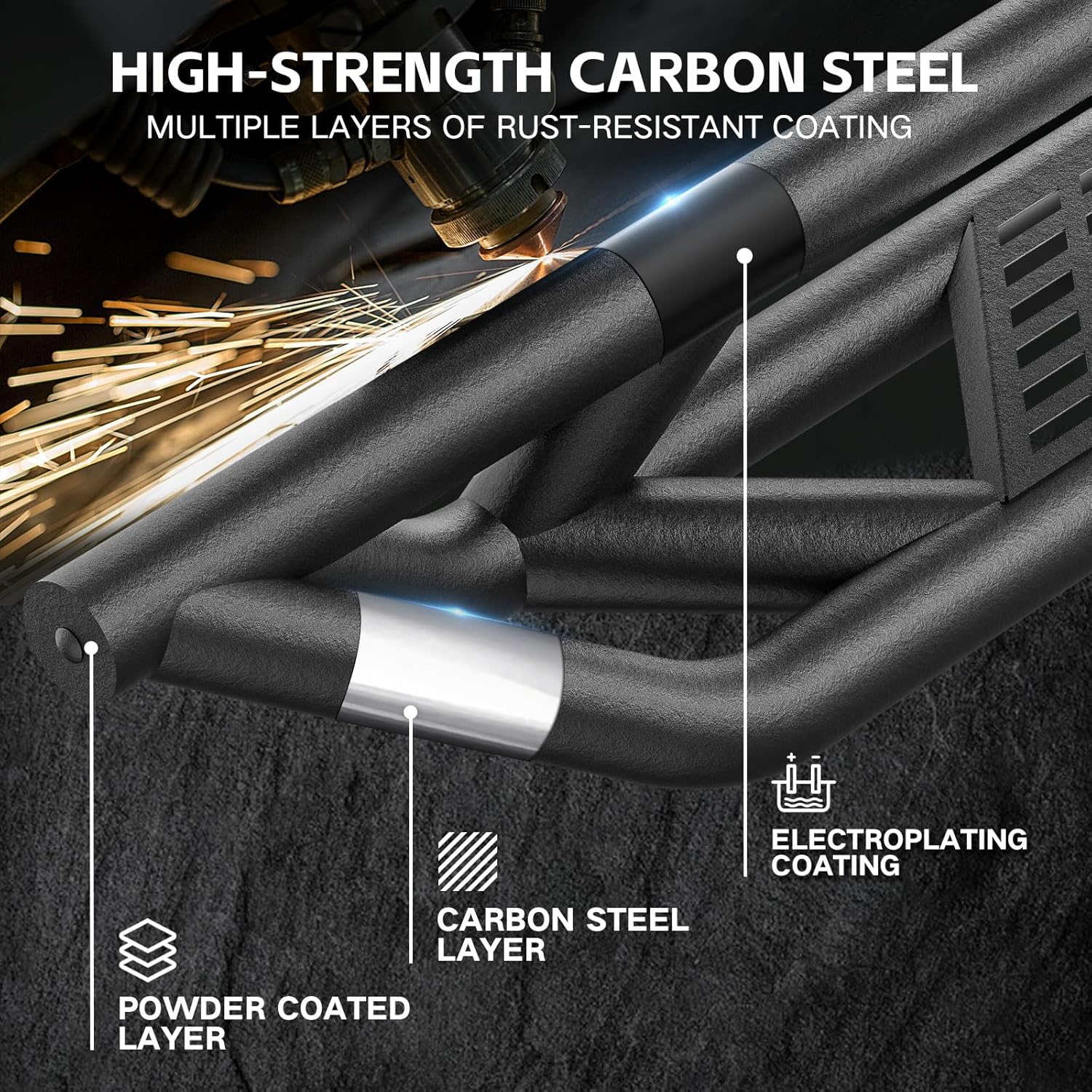 - ăDurabilityă: Constructed from heavy-duty 2.0" tubular steel, with a dual-beam system that offers maximum protection from the bottom. Can withstand a weight of up to 550 pounds. Features a textured powder coating for excellent rust and corrosion resistance.