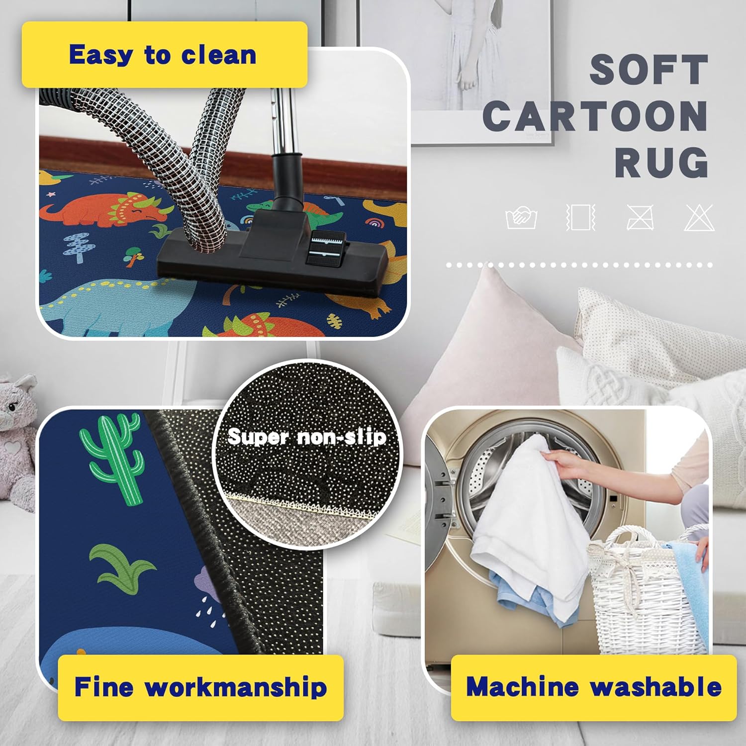 Cute Cartoon Dinosaur Rug for Boys Bedroom 59"x39" Bedroom Playroom Decor for Kids Lovely Dinosaur Animal Pattern Carpet Blue Rug Non-Slip Washable