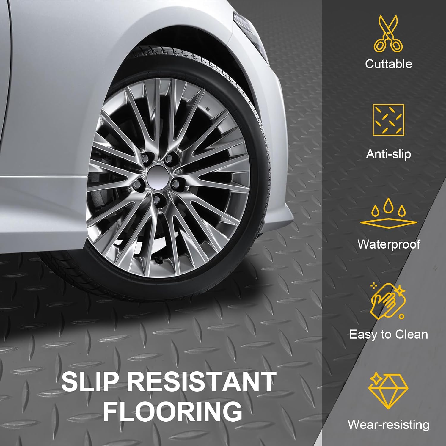 - Waterproof and Anti-slip: The diamond shaped raised pattern on the surface of the mat is specifically designed for anti slip and safe entry and exit. Moreover, due to our excellent waterproof design, the floor mats for garage can prevent the infiltration of dirt and water in rainy days, always creating a dry and clear environment.