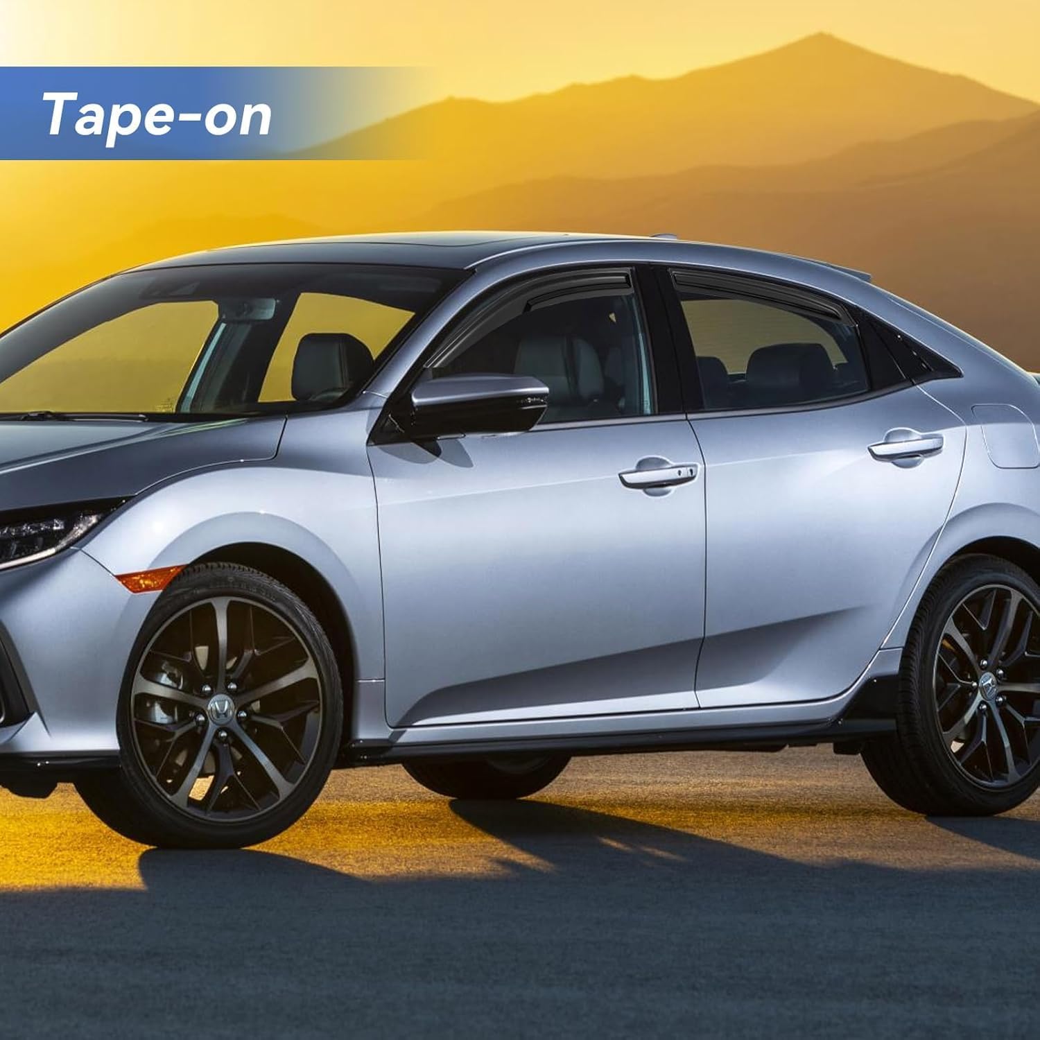 - ăPerfect FităYQAUTEC 4Pcs Out-channel Window Visors Rain Guards Shield fit for 2016 2017 2018 2019 2020 2021 16 17 18 19 20 21 Honda Civic Hatchback FK4 F7 FK8 5Dr Type-R, EX, EX-L, LX, Sport Touring, Side Window Vent Wind Deflectors Visors Shades. (Not For Sedanďź