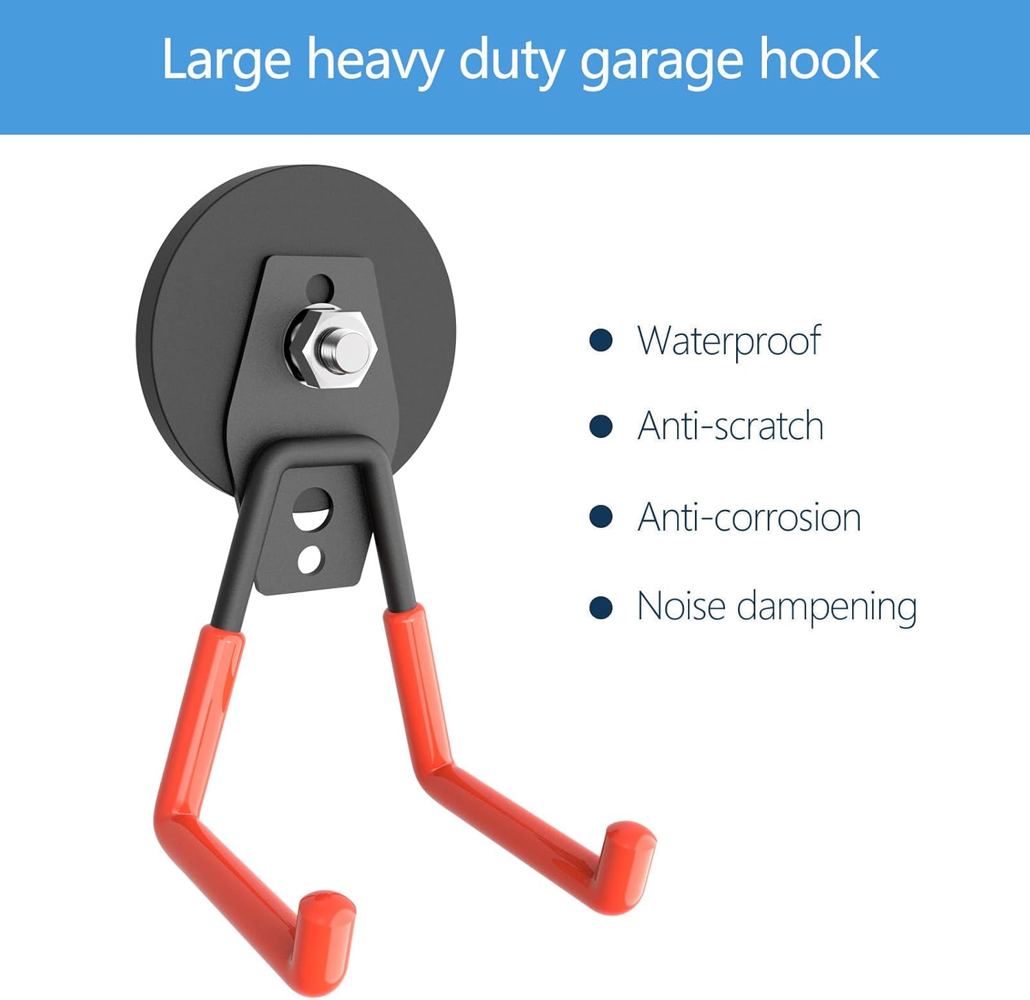 Garage Magnet Hooks, Heavy Duty Magnetic Hooks Tool Hangers for Garage Workshop Magnetic Metal Wall Hook Hangers with Anti-Slip Coating for Ladders, Garden Tools, Bulky Items (4 Pack)