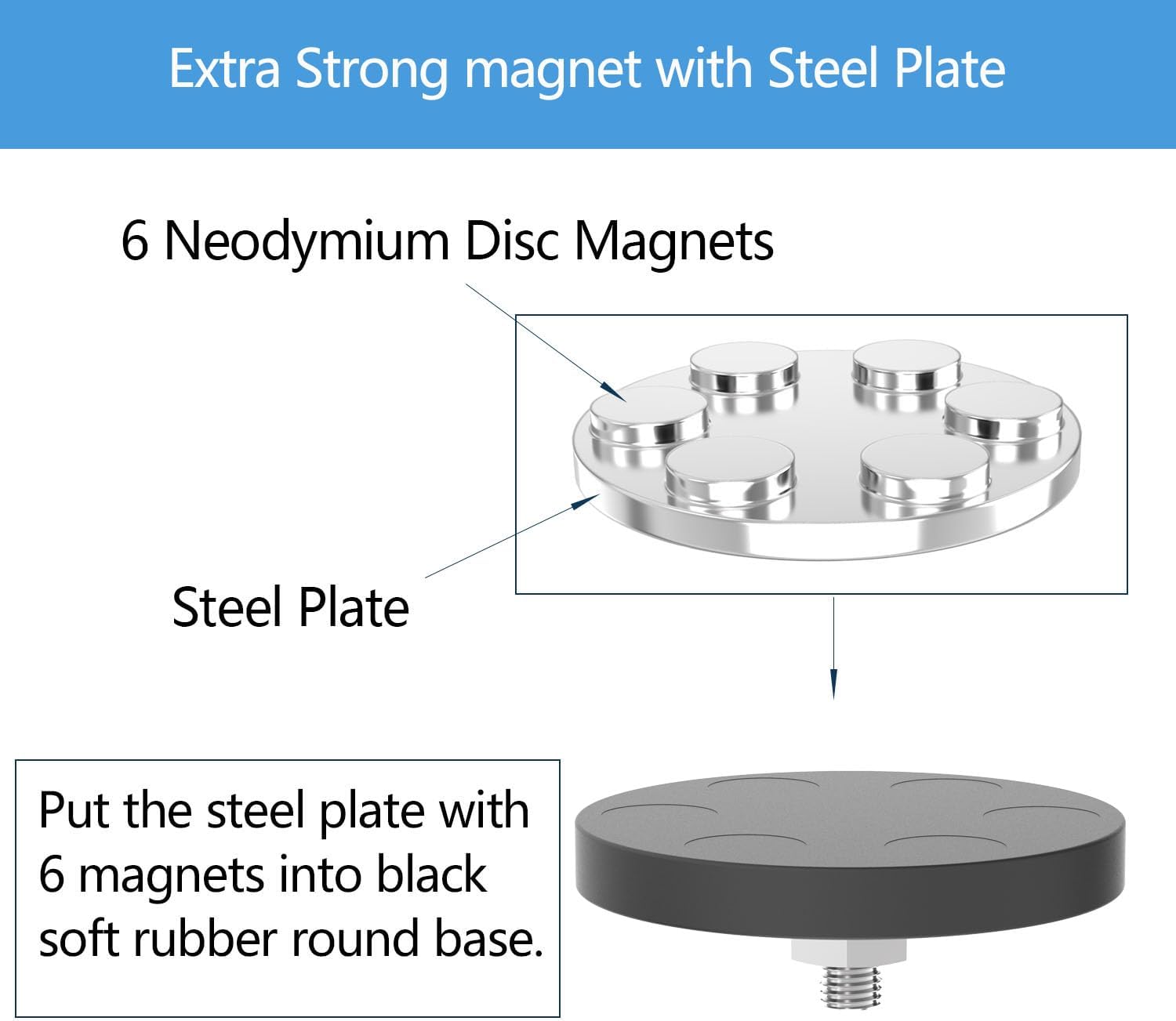 - 🧲[Powerful Magnetic Holders]: Each 2.60-inch magnet base comes with 6 super-strong rare earth magnets. In our tests on 1.18-inch steel plates, they pulled vertically with a force of 80lbs and horizontally with a force of 16lbs.
