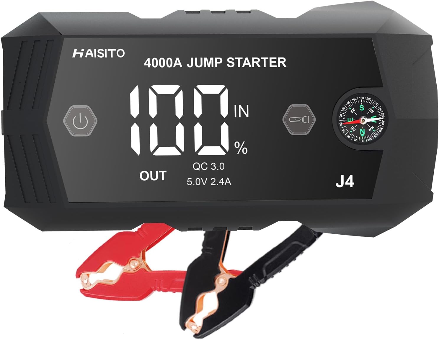 - ăENSURE SAFETYăHaisito jump box uses safer materials and a more intelligent chip design, with a focus on safety during use. It is equipped with an intelligent clip to effectively prevent sparks when connecting the battery. Please start the machine after connecting the battery to ensure safe charging and provide protection for both the user and the vehicle.