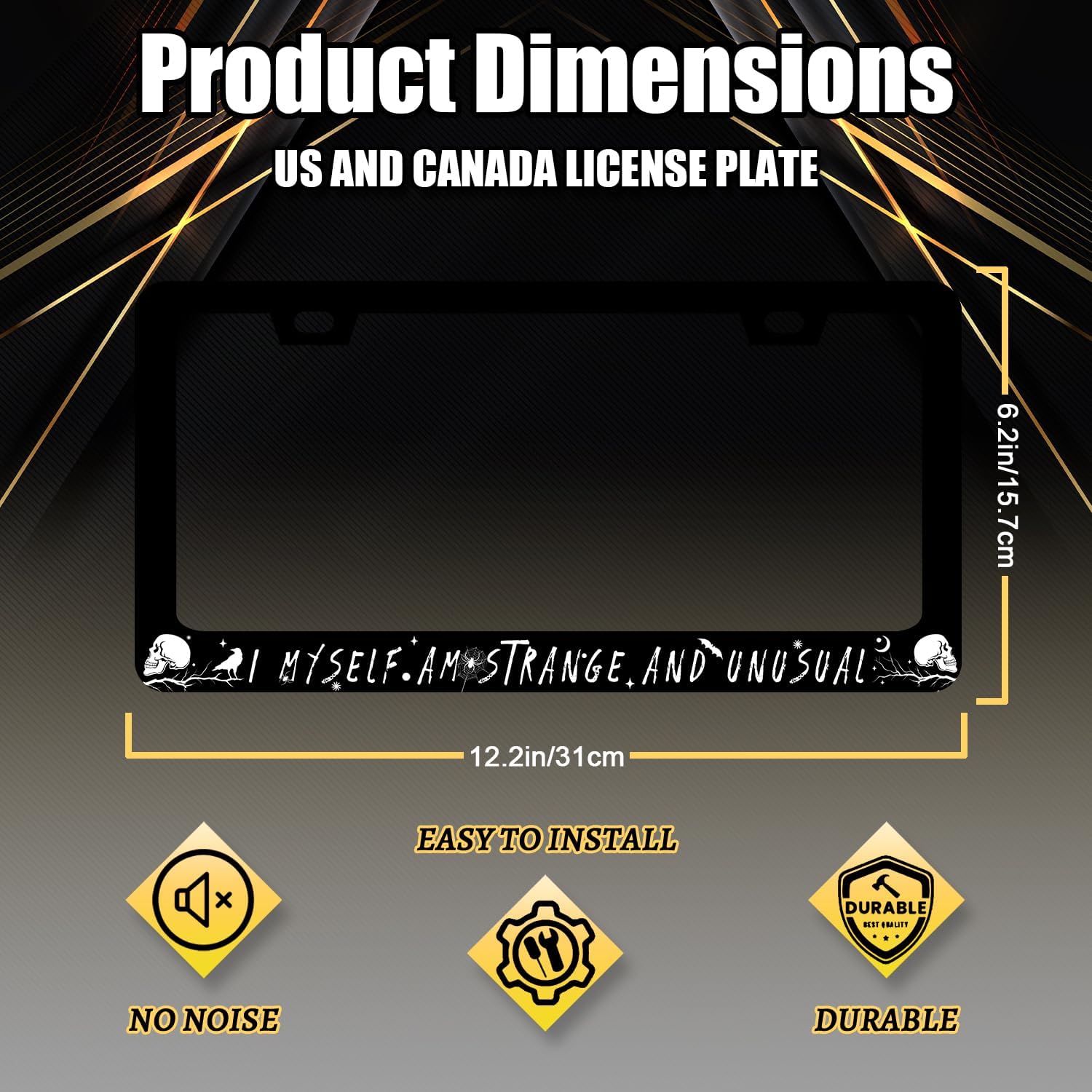 I Myself am Strange and Unusual License Plate Frame Personalise License Plate Holder Front and Rear Car Tags Stainless Steel Auto Parts Funny License Plate Men Women Decoration with Screws 12.2"x6.2"
