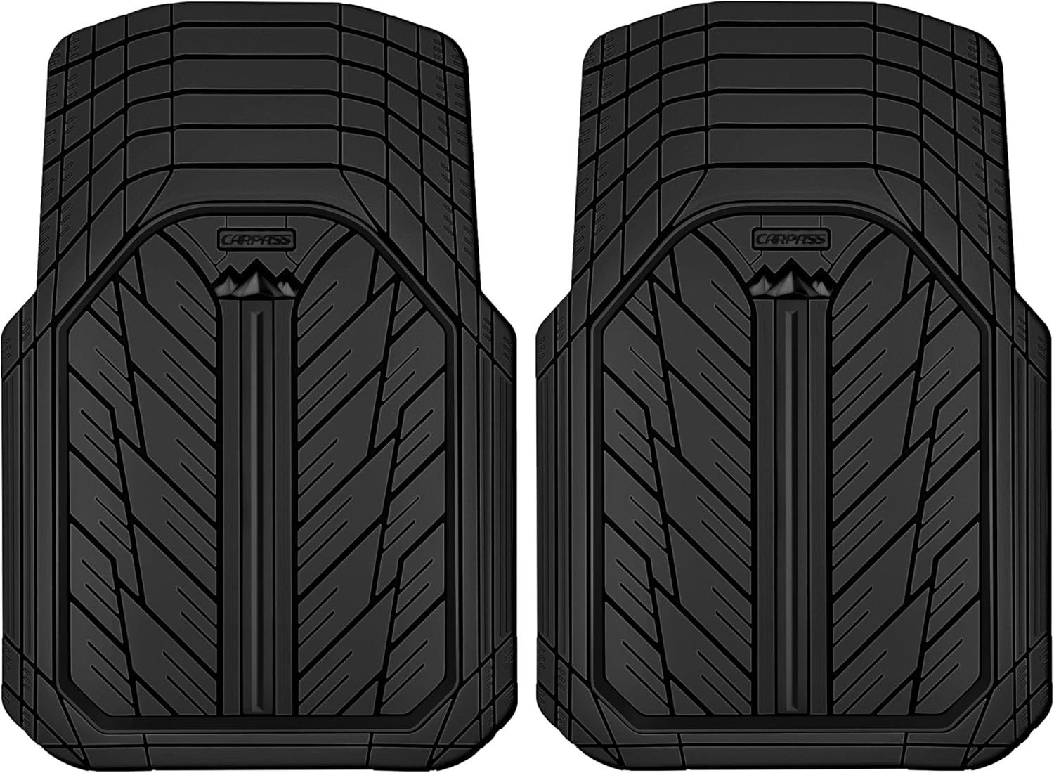 CAR PASS Small DeepDish Floor Mats for Cars, Heavy Duty Rubber Car Mats 2-Piece, Universal Trim-to Fit Automotive Floor Mats Front Only for Truck Van SUV Waterproof All Weather Car Mats (Black)
