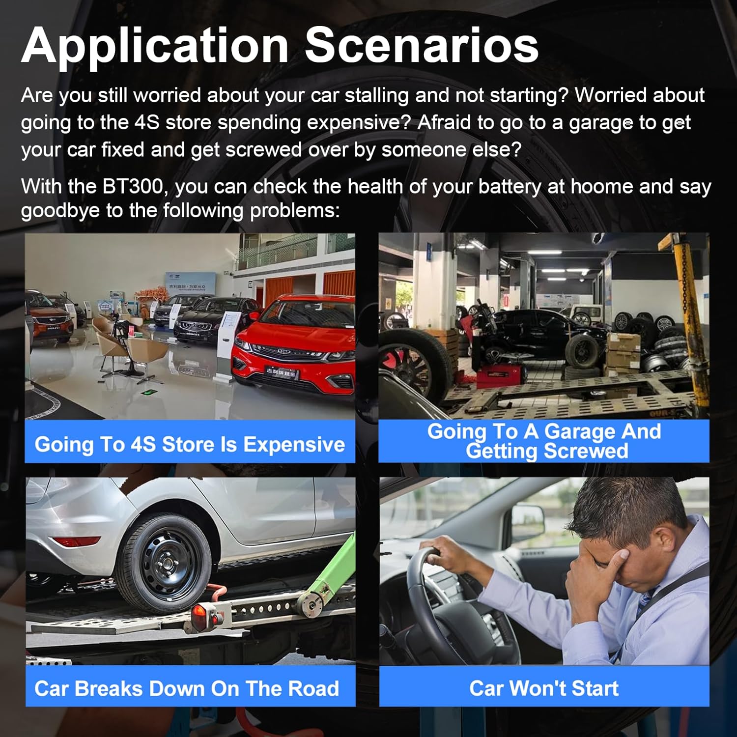 - [Wide Applications & After-sales Services] Topdiag BT300 auto battery tester can be widely use for all 12V/24V vehicle battery system diagnostics, including but not limited to cars, trucks, buses, diesel vehicles, motorcycles, boats, beach carts and more. And each product will come with 1 year warranty and F-ULL r-efund or new replacement within 30 days services. If you have any suggestions or questions about our product, please feel free to contact us and we will get back to you asap.