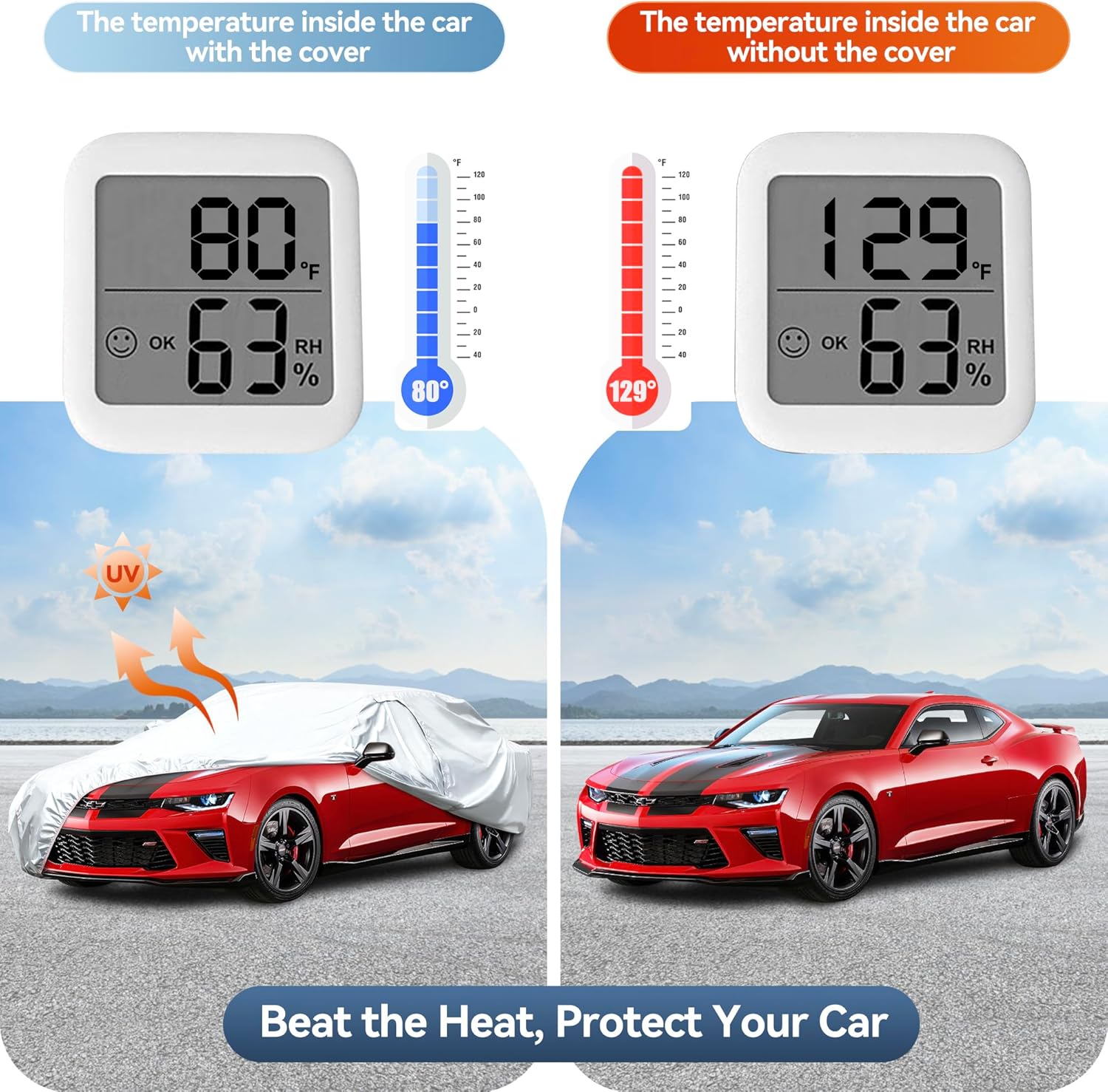 - ăAll-Season ProtectionăJarogan car cover waterproof all weather is designed to provide comprehensive protection throughout the year,perfect for indoor and outdoor use.Our full exterior cover shields your vehicle from harsh elements such as rain,snow,sun,dust,snow,fallen leaves,industrial pollution,bird droppings,pollen,branches,acid rain and more, ensuring year-round preservation of your car's exterior.