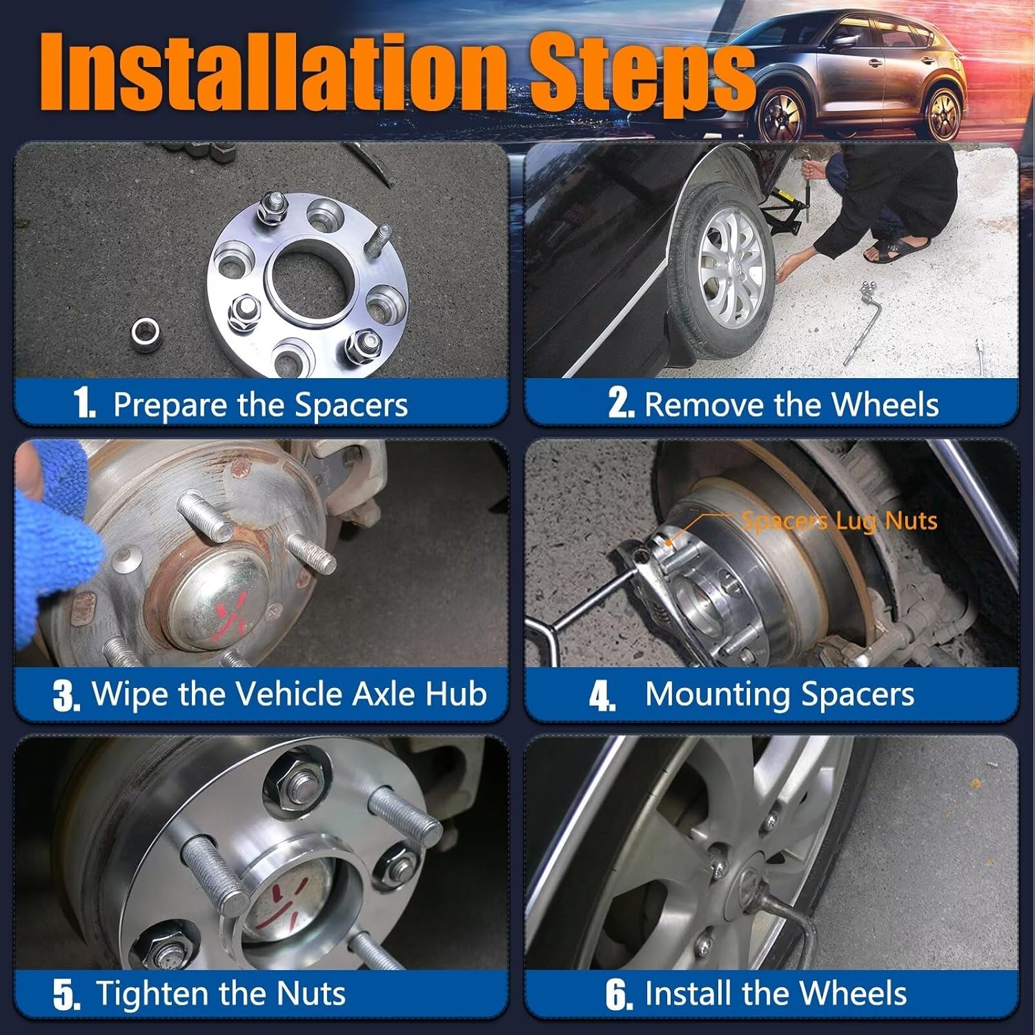 - Features - The 4x4 Wheel Spacers are CNC machined from 6061-T6 aluminum billet and pre-installed with 10.9 grade bolts, Stronger and lighter. Anodized surface has additional corrosion resistance.Not easy to rust and fade.