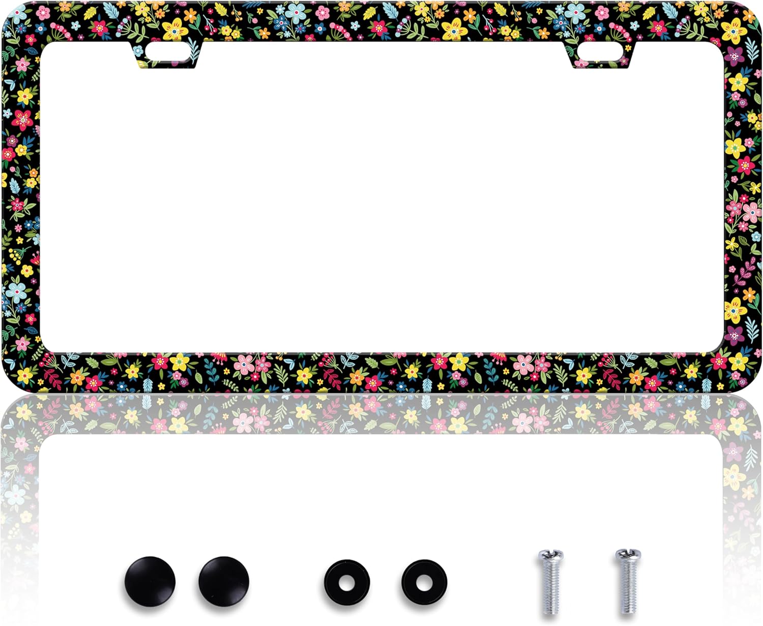 Colorful Folk Floral License Plate Frame Flower License Plate Holder Personalise Stainless Steel Funny Design Compatible with Standard License Plate Frames for USA and Canada 6 X 12 Inch with Screws