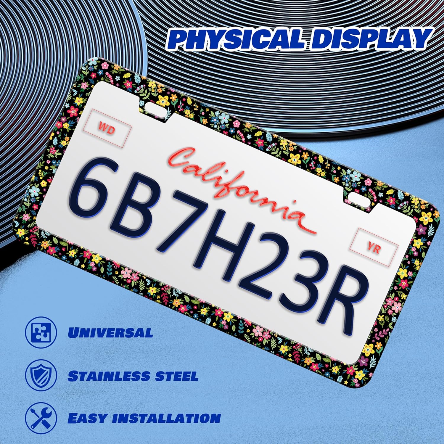 - The size of the license plate frame is: 12 x 6 inches, it fits all standard size US vehicle license plates.With compatibility, the stylish design frame fits perfectly on your car license plate.