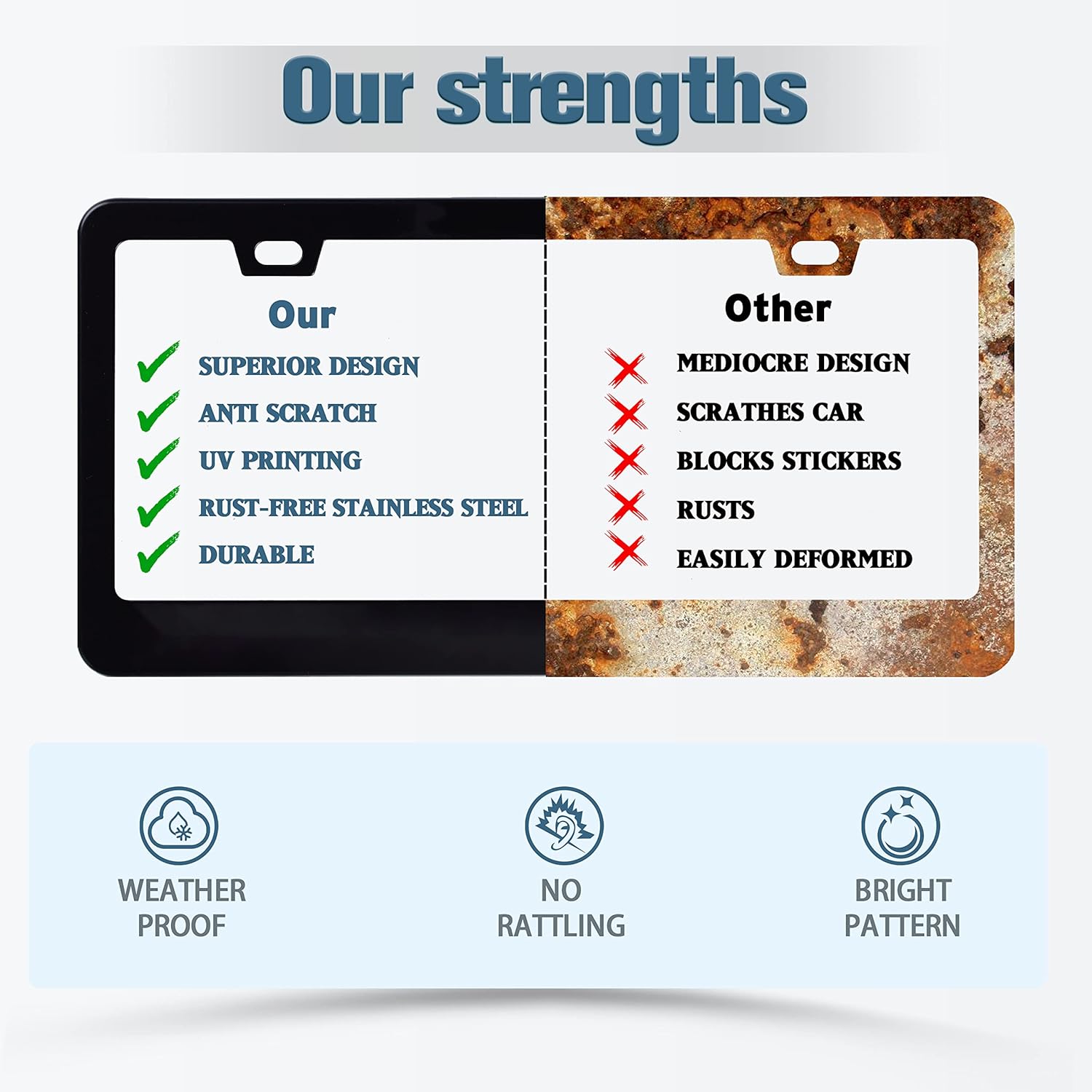 - The size of the license plate frame is: 12 x 6 inches, it fits all standard size US vehicle license plates.With compatibility, the stylish design frame fits perfectly on your car license plate.