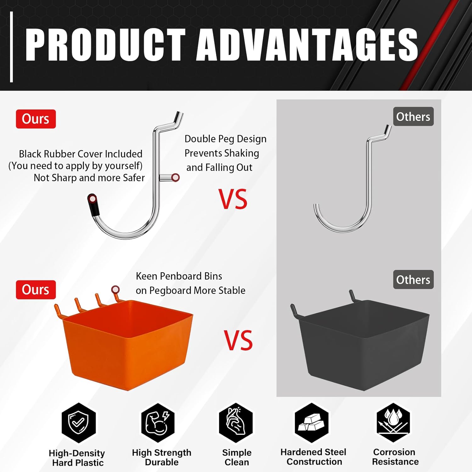 - 【Wide Application】Our kit is ideal for storing tools. Whether it's your garage, workbench, workshop, kitchen, craft room, basement, tool shed, factory or warehouse, our pegboard tool organizers are up to the task. Ensure every space is optimized and clutter free.