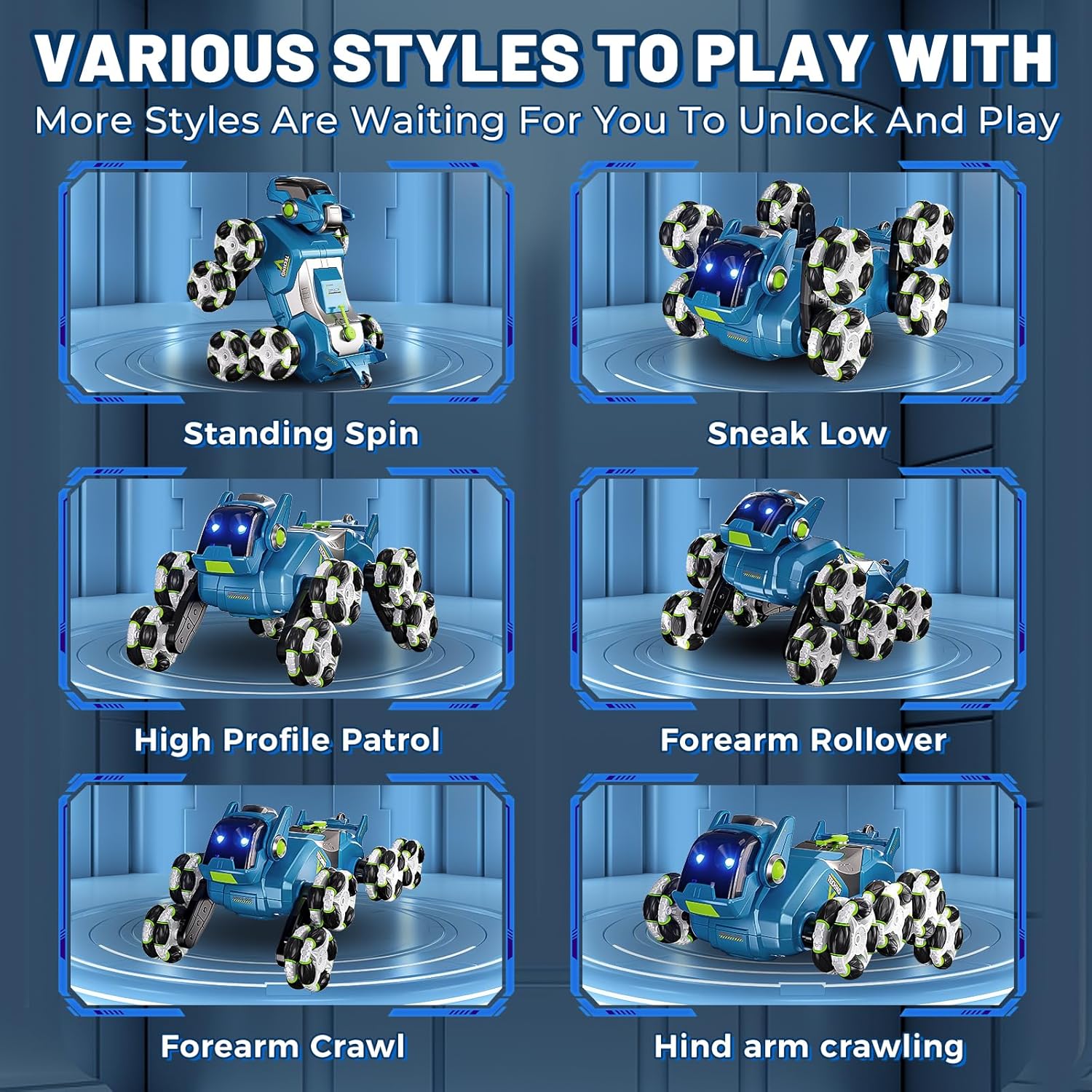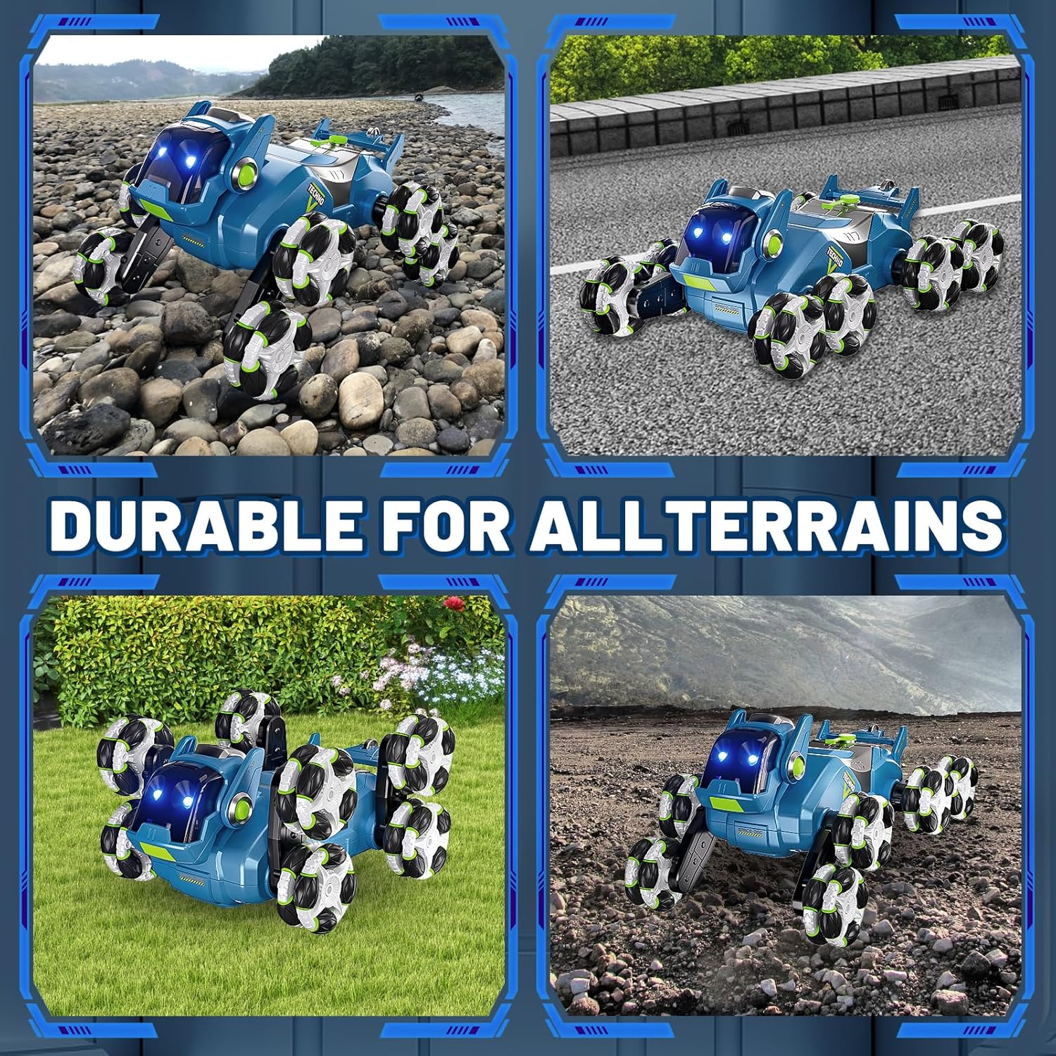 - Solid bodywork & all-terrain driving:Designed with High strength ABS body and robust bionic joints,Powerful 8WD stand -alone designed ,Roller traction tires with shockproof and slip resistance to handle any terrain easily, be it gravel, grass, sand, or stairs, can freely switch between on-road and off-road modes,enabling spectacular stunts in diverse environments, Let You child taking fun to every corner,best toys for ages 8-13 6-8 to play