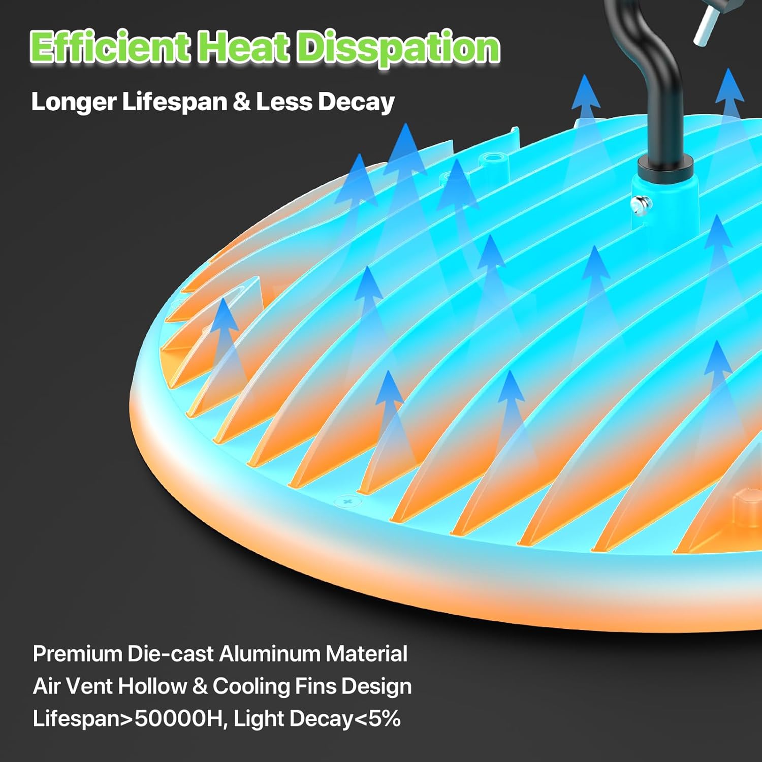 - Stable Performance: Features with pure aluminum housing, air vent hollow design and high cooling fin, makes this led high bay light thermal conductivity and ensures high performance for over 50,000 hours of continuous use. IP65 waterproof and IK08 shockproof grade, this high bay light can be used in various scenarios.