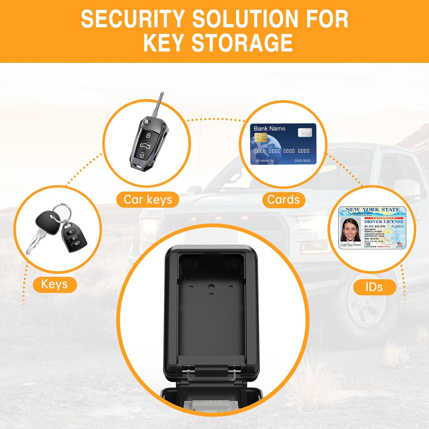 - Multi-Purpose Car Lock Box: The car key lock box is made for car sharing, perfect for Ride Share, Turo, GetAround. From car keys, house keys, and fobs, cash, credit cards, IDs, this versatile and convenient car safe storage box has you covered, storing your valuables when you're on the go. The ideal solution for homeowners, realtors, property management, vacation homes, joggers, surfers, skiers or anyone who needs to go hands-free!