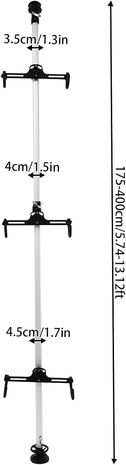- High Stability: High hardness aluminum alloy main tube, thickened tube diameters (1.77 inches, 1.57 inches, 1.38 inches), booster spring top base, and booster fastening knob make this product strong and sturdy, and each hook can hold up to 66.14 lbs, ensuring that the bikes on display are safe and secure. Screw holes in the base under the booster fastening knob allow you to double-fasten the hooks to further enhance stability.