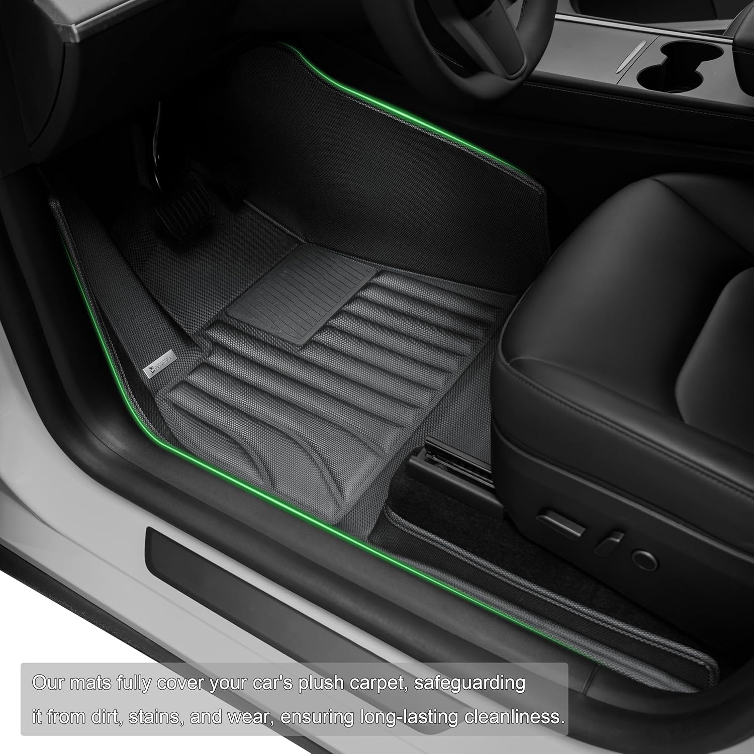 - Full 360° Protection – These mats cover the entire cabin, providing full protection from the footwells to the seat rails and under-seat areas. Every corner of your Tesla Model Y is shielded from dirt, moisture, and wear.