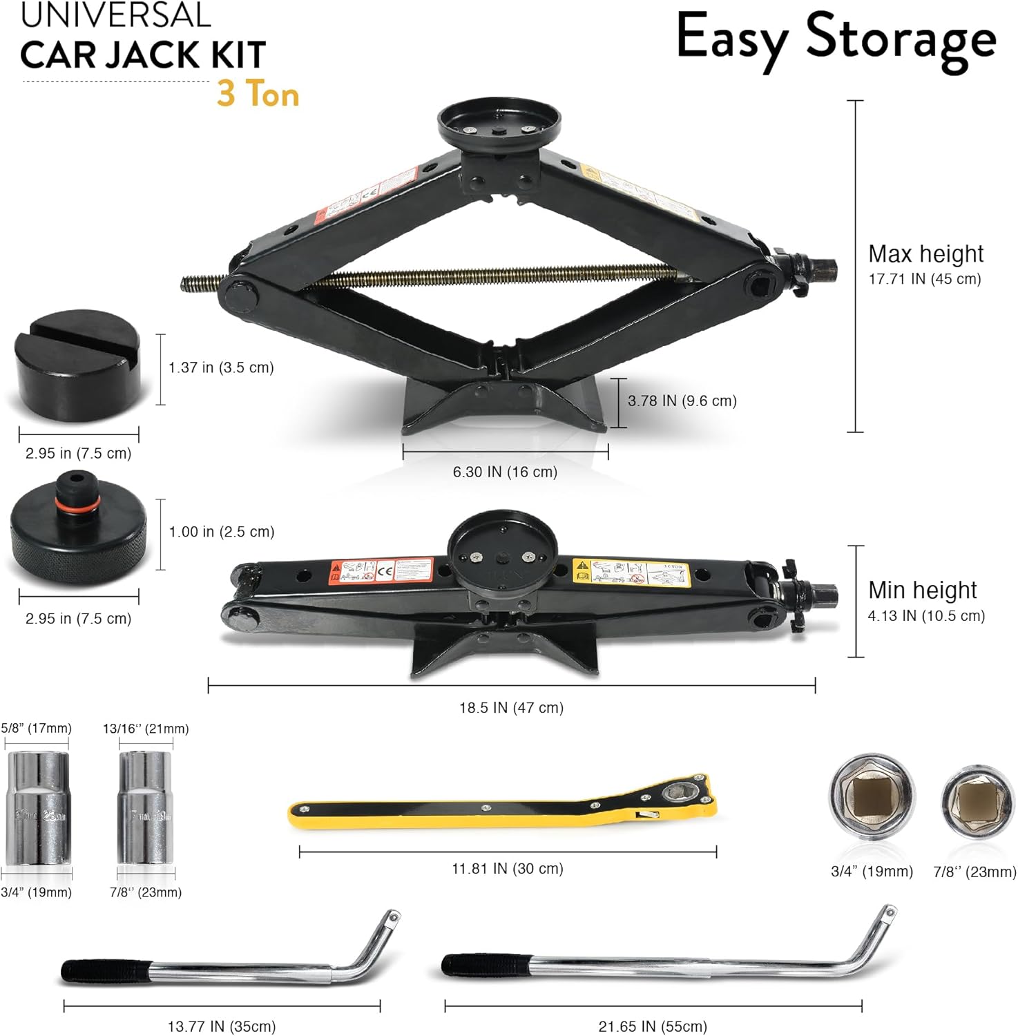 - ✅ PORTABLE & DURABLE STORAGE - Keep your Car Jack Kit organized and ready for emergencies with the included heavy-duty storage bag. Its compact design ensures easy storage in your trunk, while the durable fabric protects your tools from wear and tear, ensuring long-lasting performance. Perfect for road trips or daily commutes!