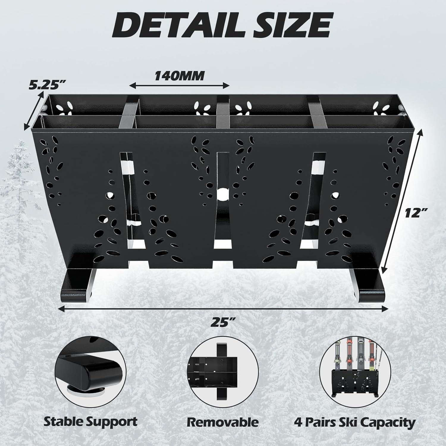 - Holds 4 Pairs of Skis – Designed to securely store up to 8 pairs of skis, this ski storage rack is perfect for keeping your garage or home organized and free of clutter.
