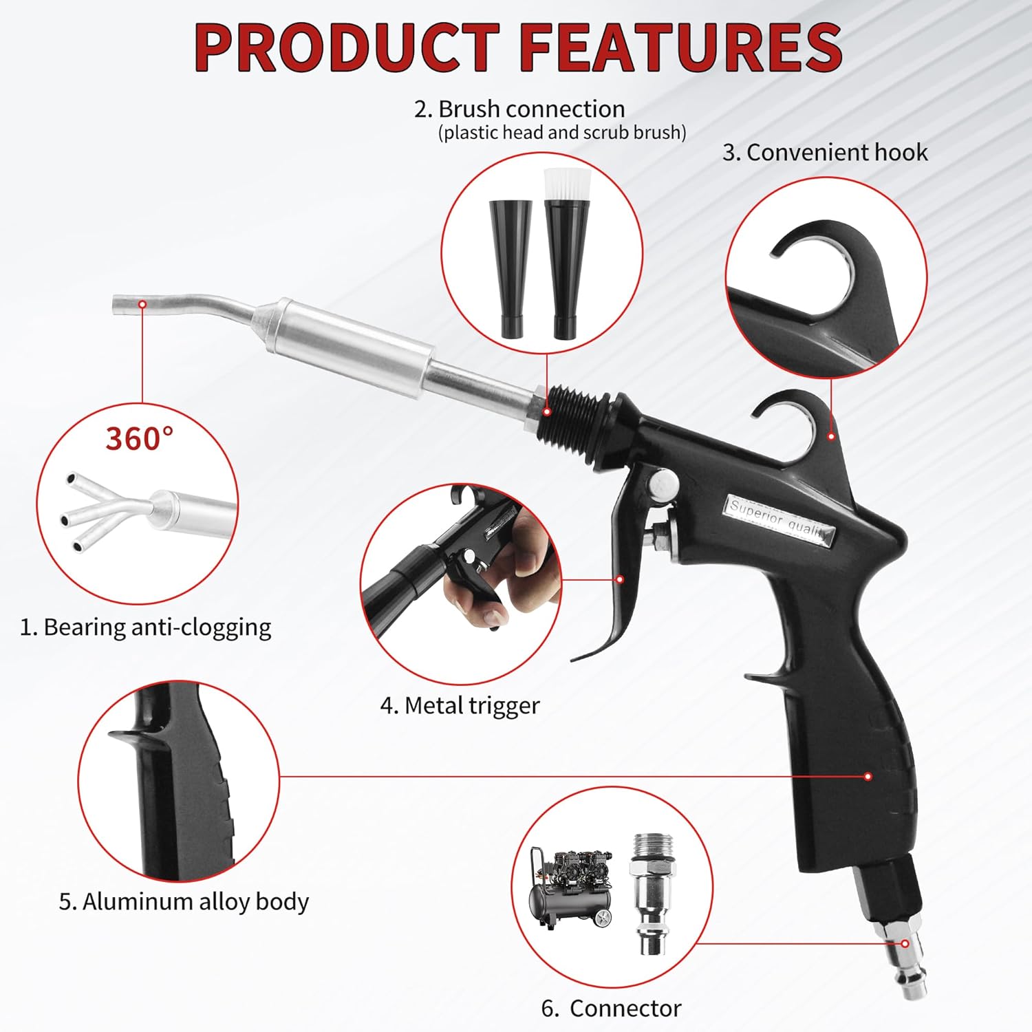 - Multifunction:Car cleaning gun can clean car surfaces quickly and efficiently,including seats,doorknobs,upholstery,air conditioning outlet,tires and roofs. In addition to removing dust and dirt,the dust gun can also quickly dry the moisture on the car