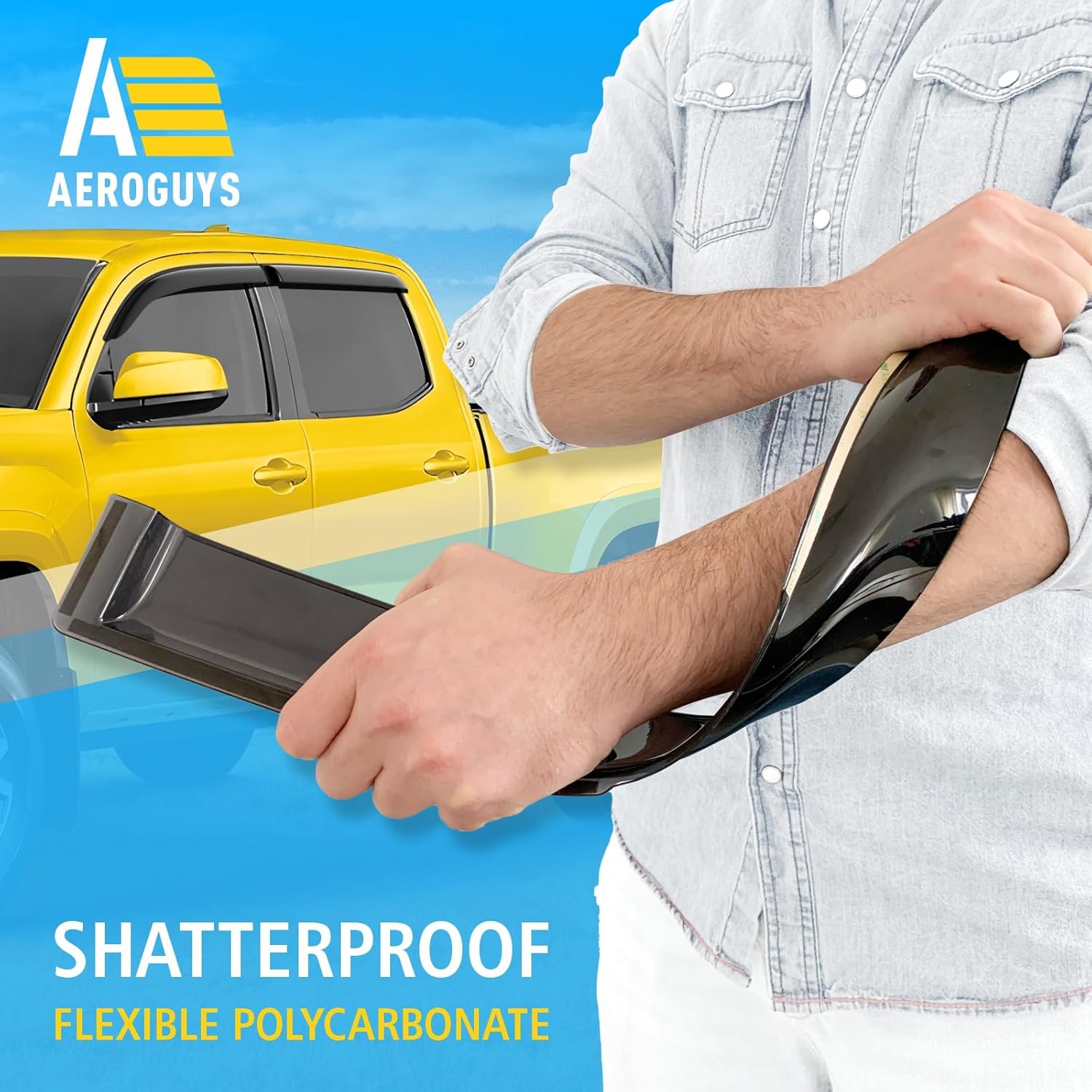 Extra Durable Window Deflectors Tape-On Window Visors Rain Guards Fit for Toyota Tacoma 2016-2023 Double Cab, Sun Visors, Wind Vent for Shades, Exterior Car Accessories - 4pcs. AG0743