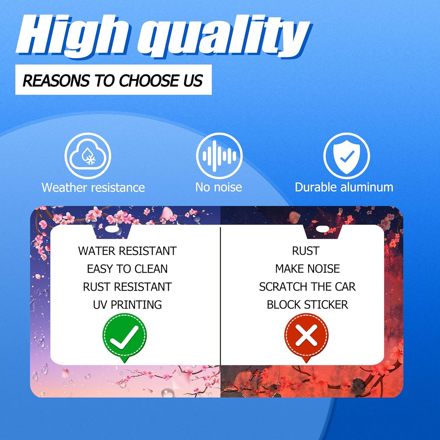 Cherry Blossom License Plate Frame Pink Flowers Floral License Plate Stainless Steel Funny License Plate Holder Women Car Accessories Decoration with Screws Fits Standard Vehicles Size 12.3" x 6.3"